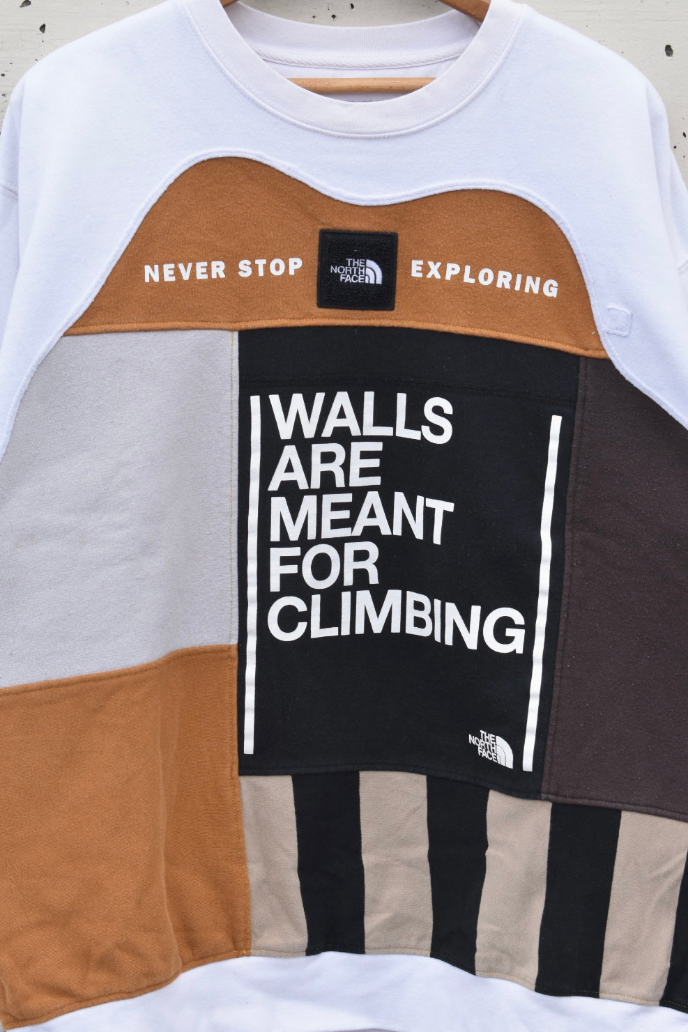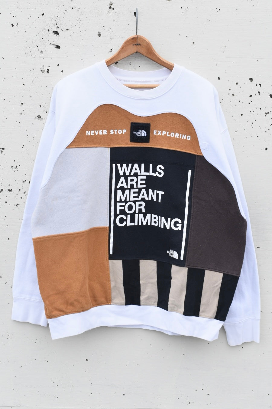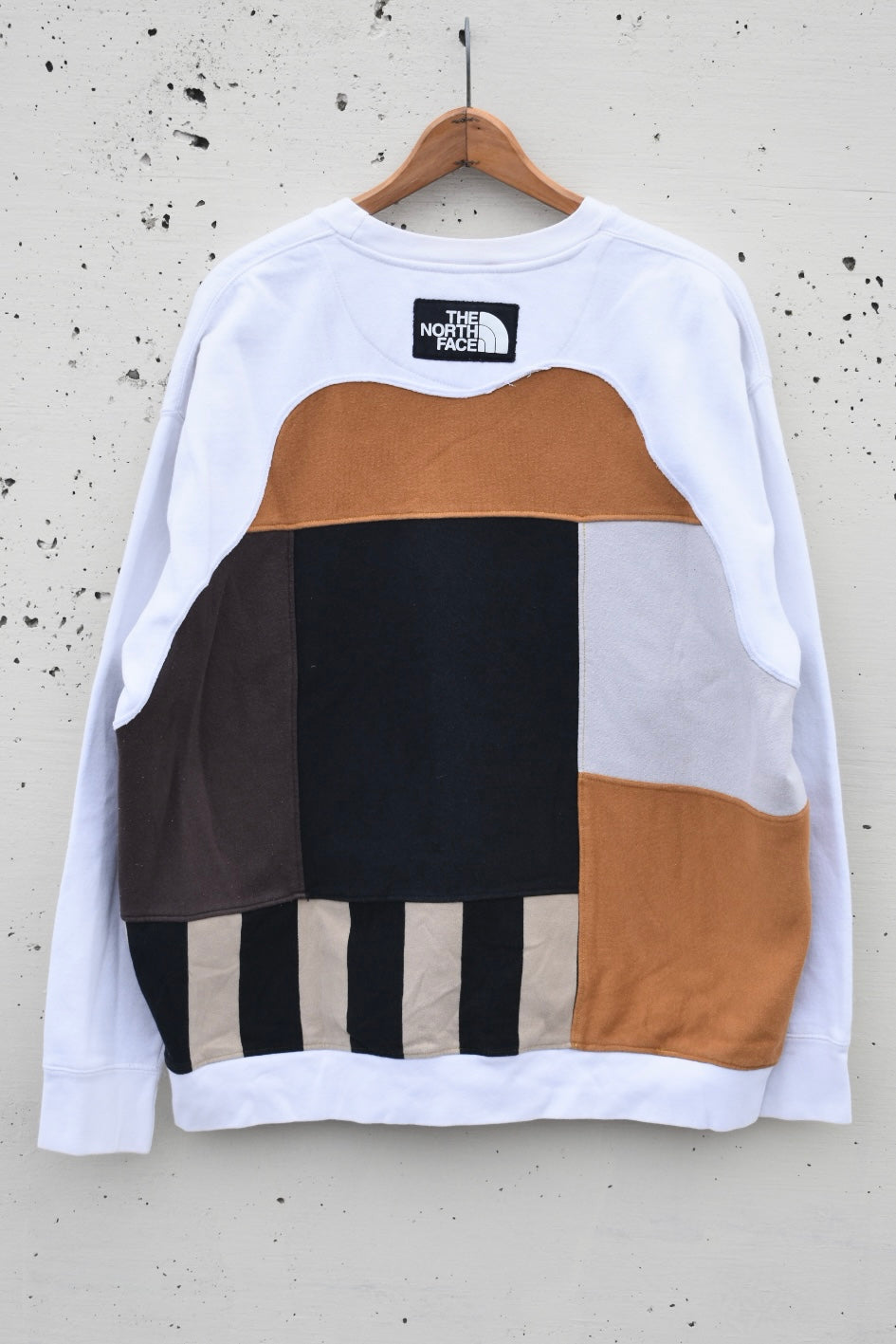 White, brown and black reworked/upcycled sweatshirt