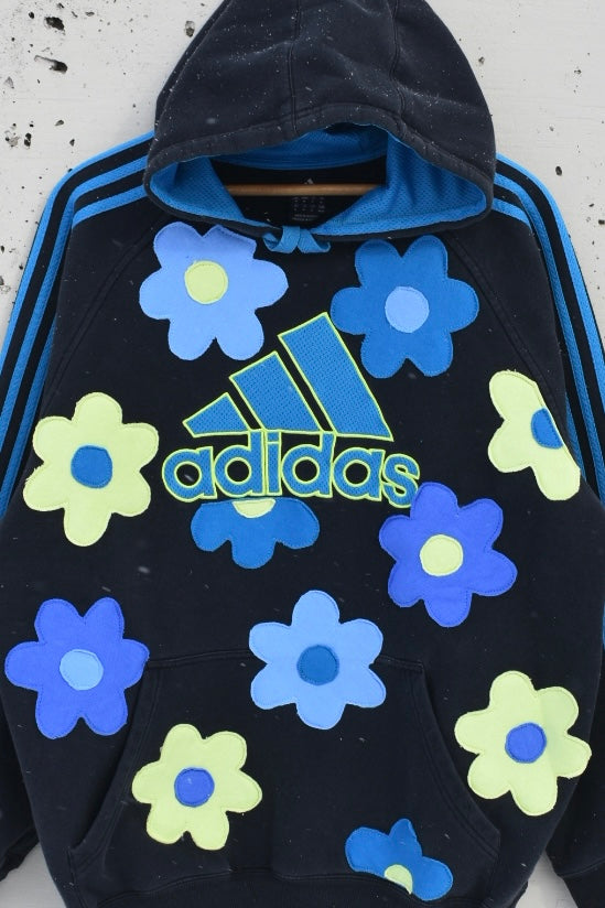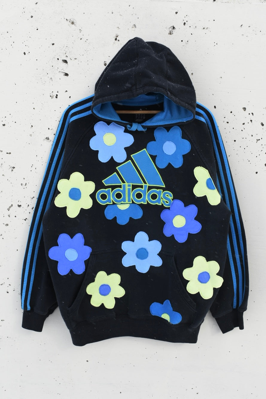 Black, blue and yellow reworked hoodie