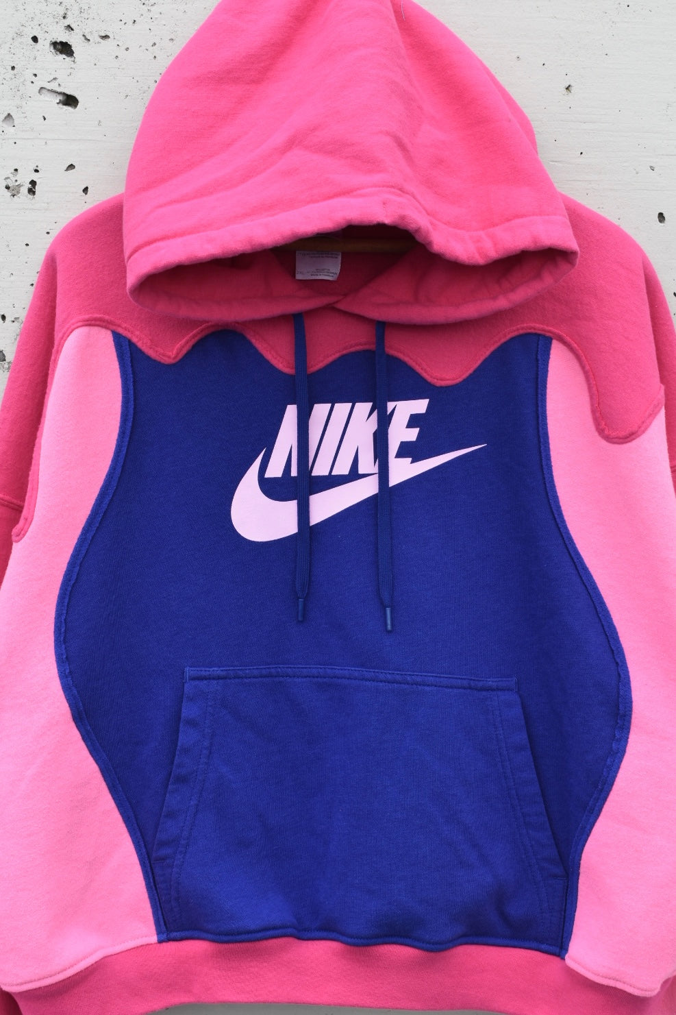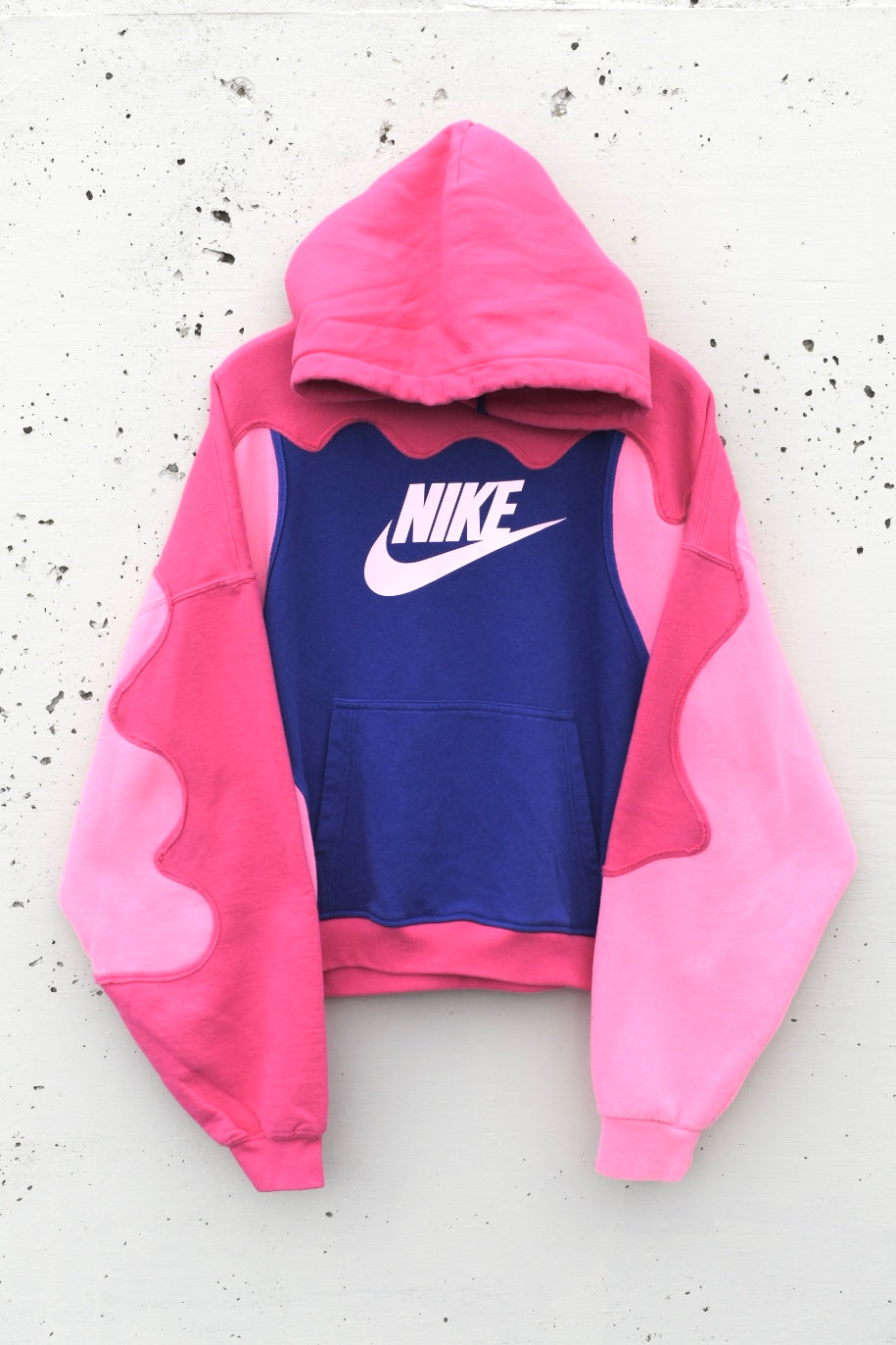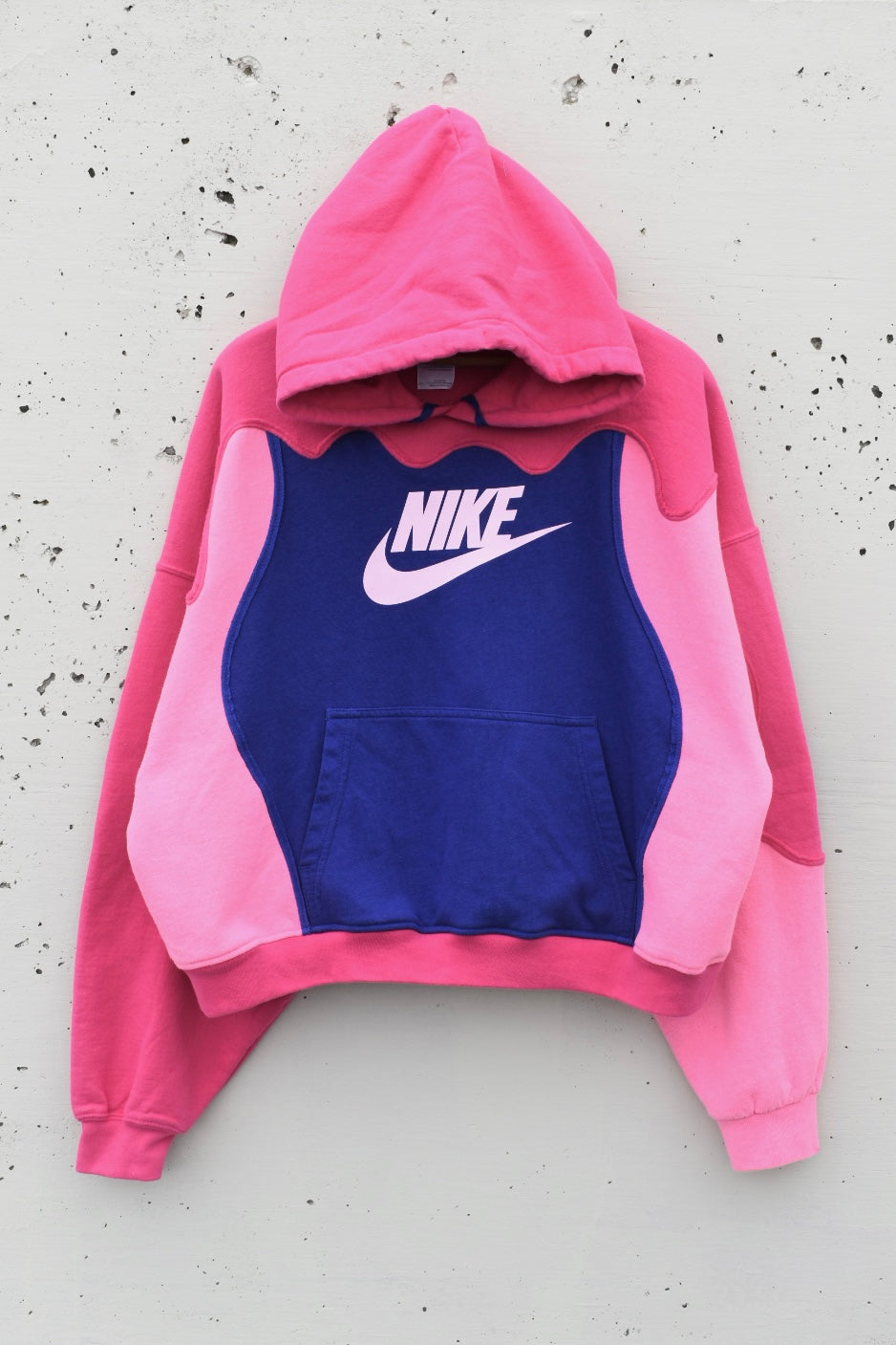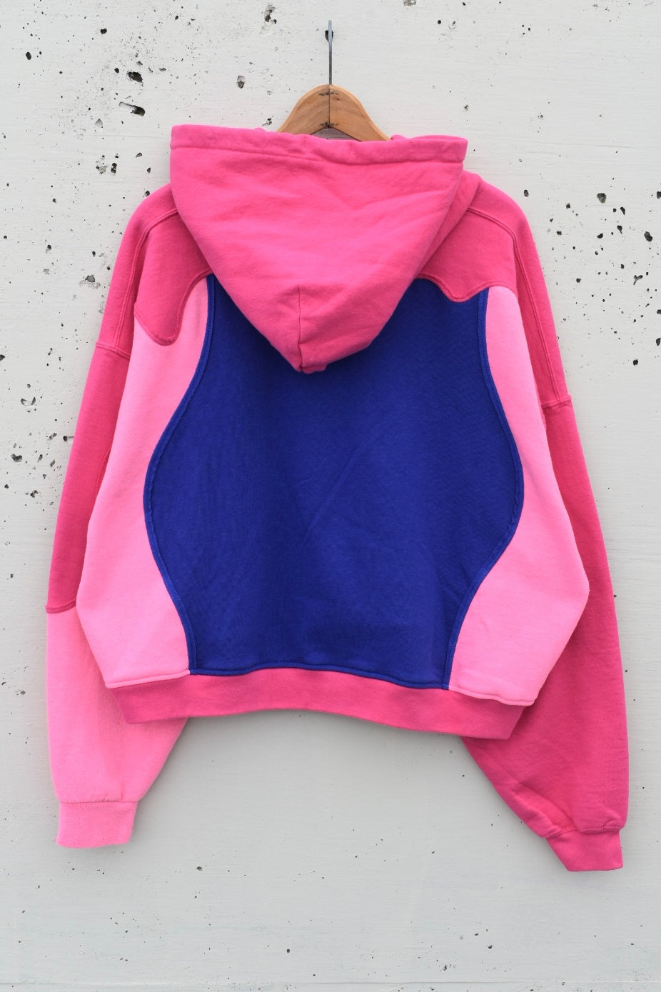 Two toned pink and blue reworked/upcycled cropped hoodie