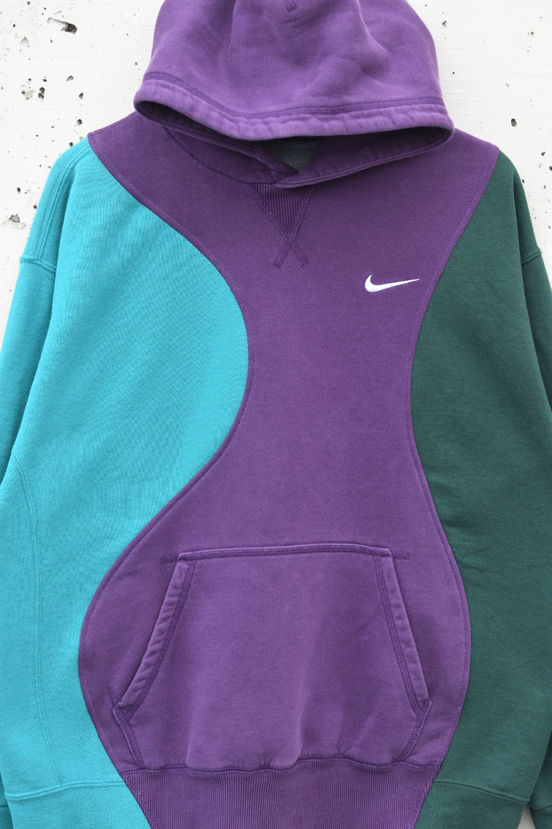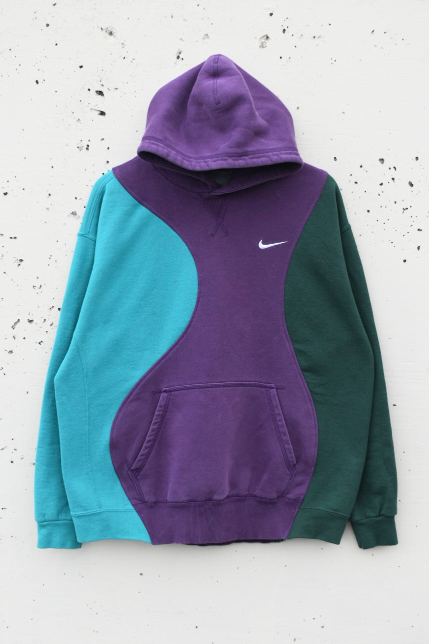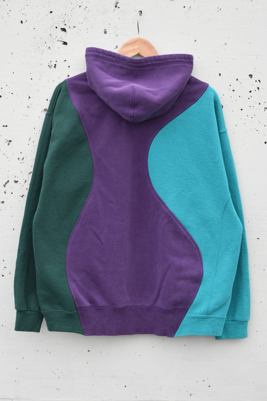 Purple, teal and green reworked/upcycled hoodie