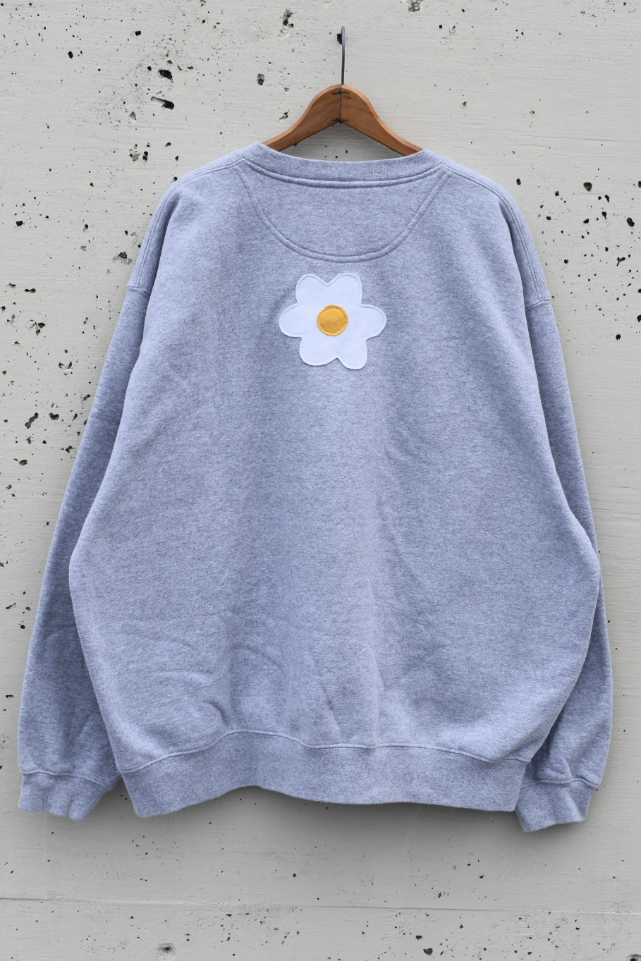 Gray, black, yellow and purple reworked/upcycled sweatshirt