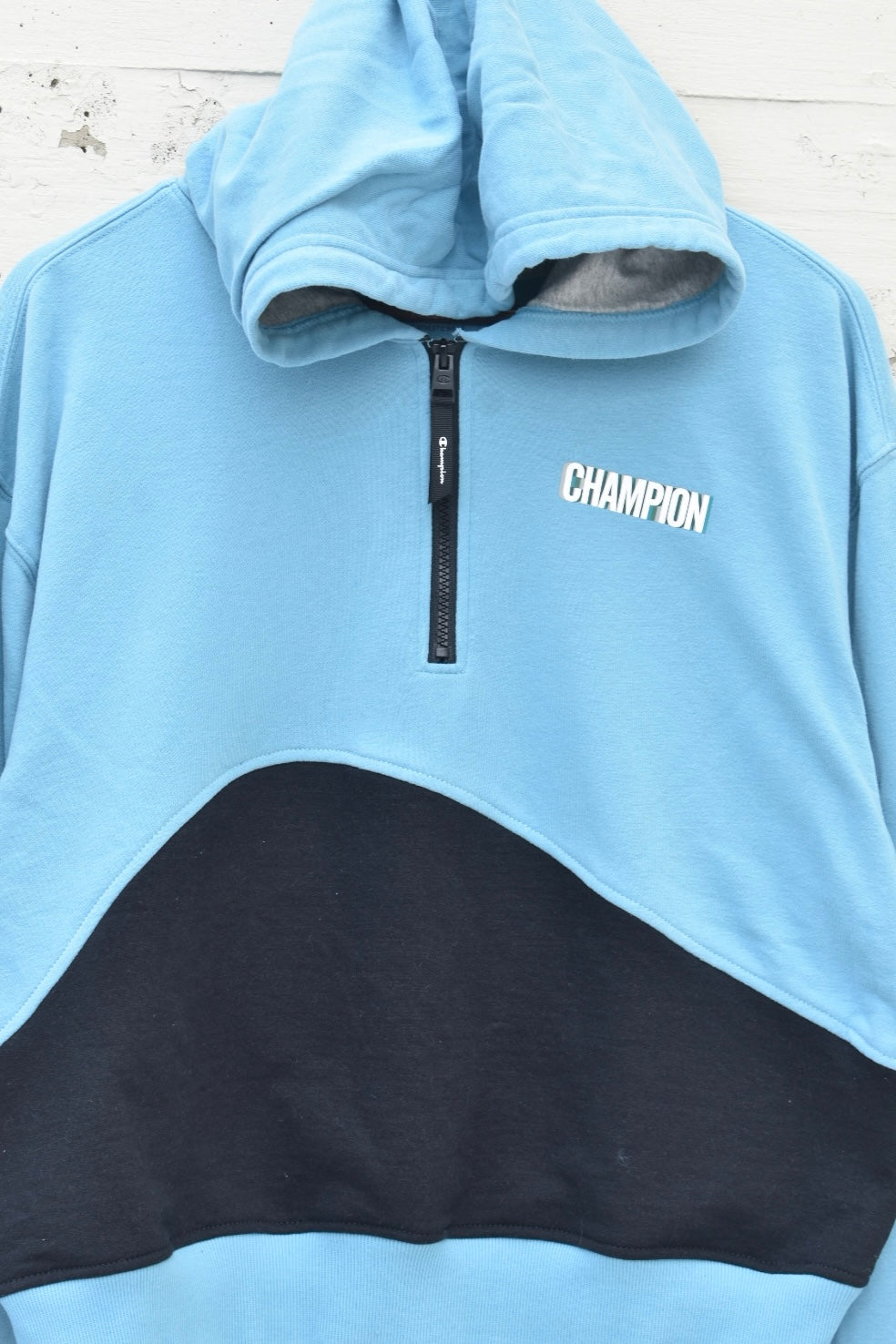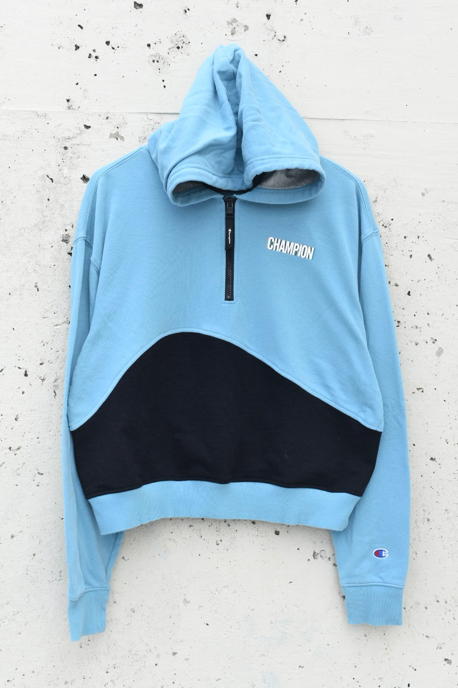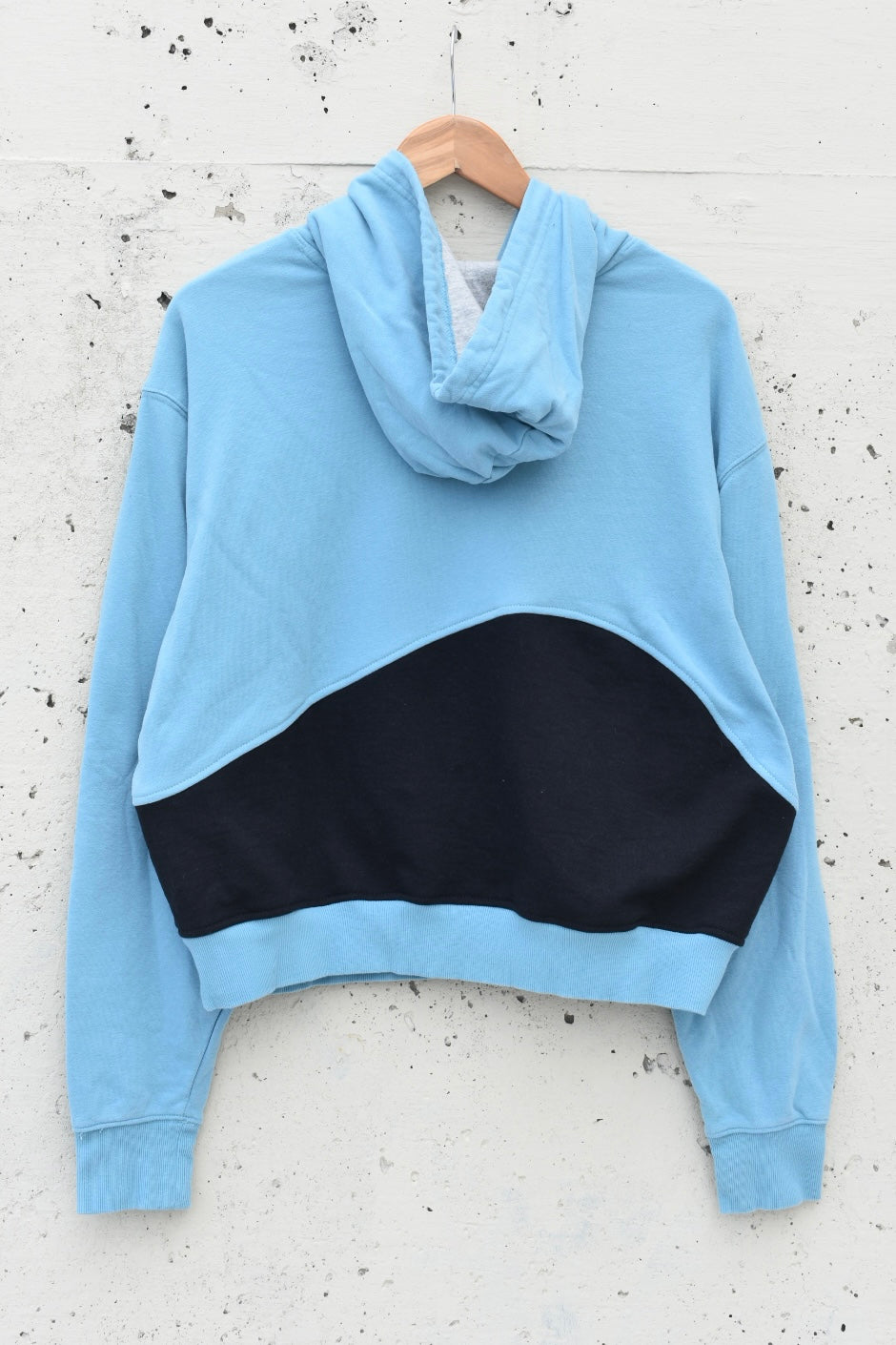 Blue and black reworked/upcycled cropped quarter zip hoodie