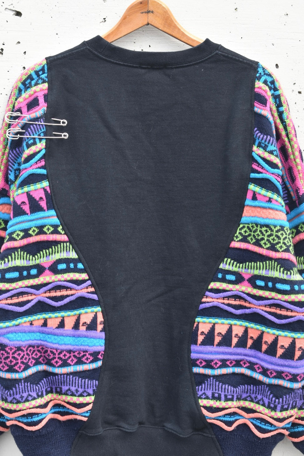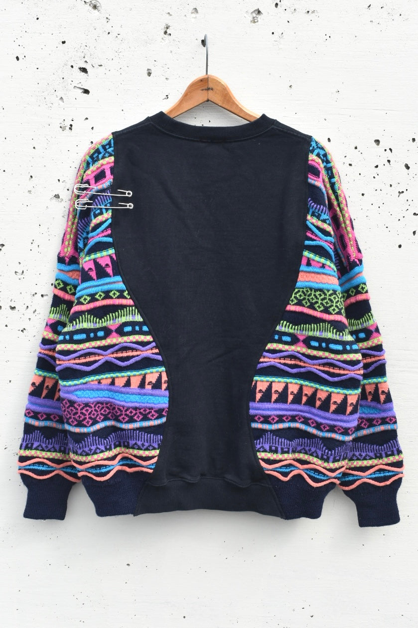 Black and colorful reworked/upcycled crewneck/knit sweater