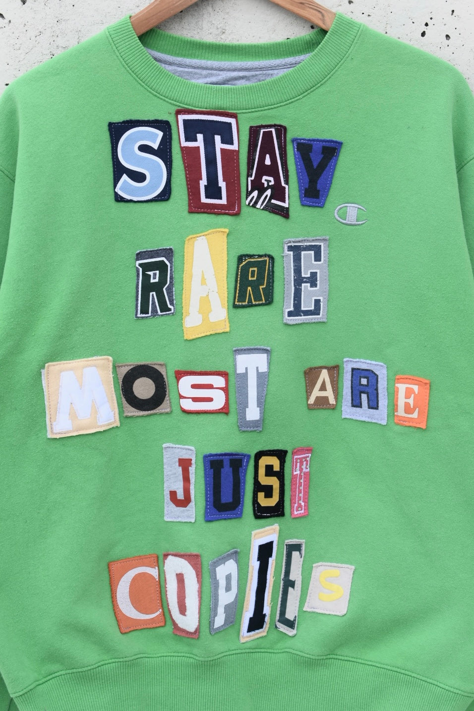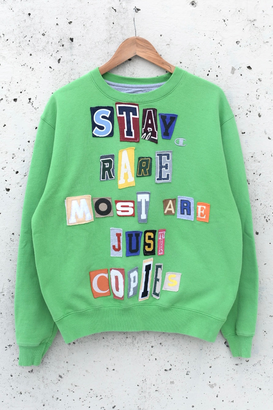 Green and colorful reworked/upcycled sweatshirt