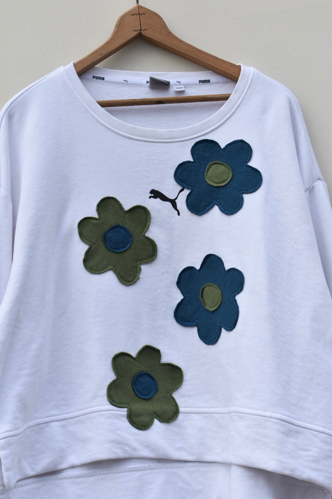 White, green and blue reworked sweatshirt