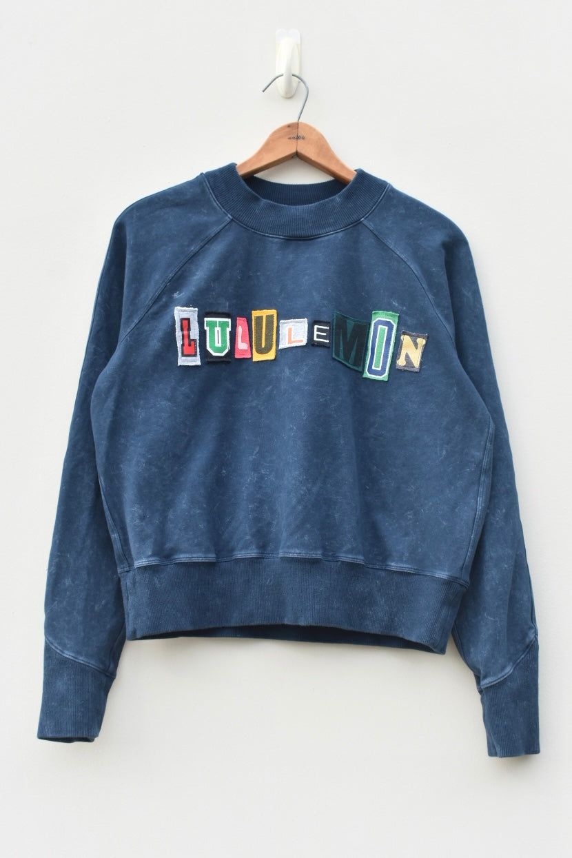 Acid blue and colorful reworked athletic sweatshirt