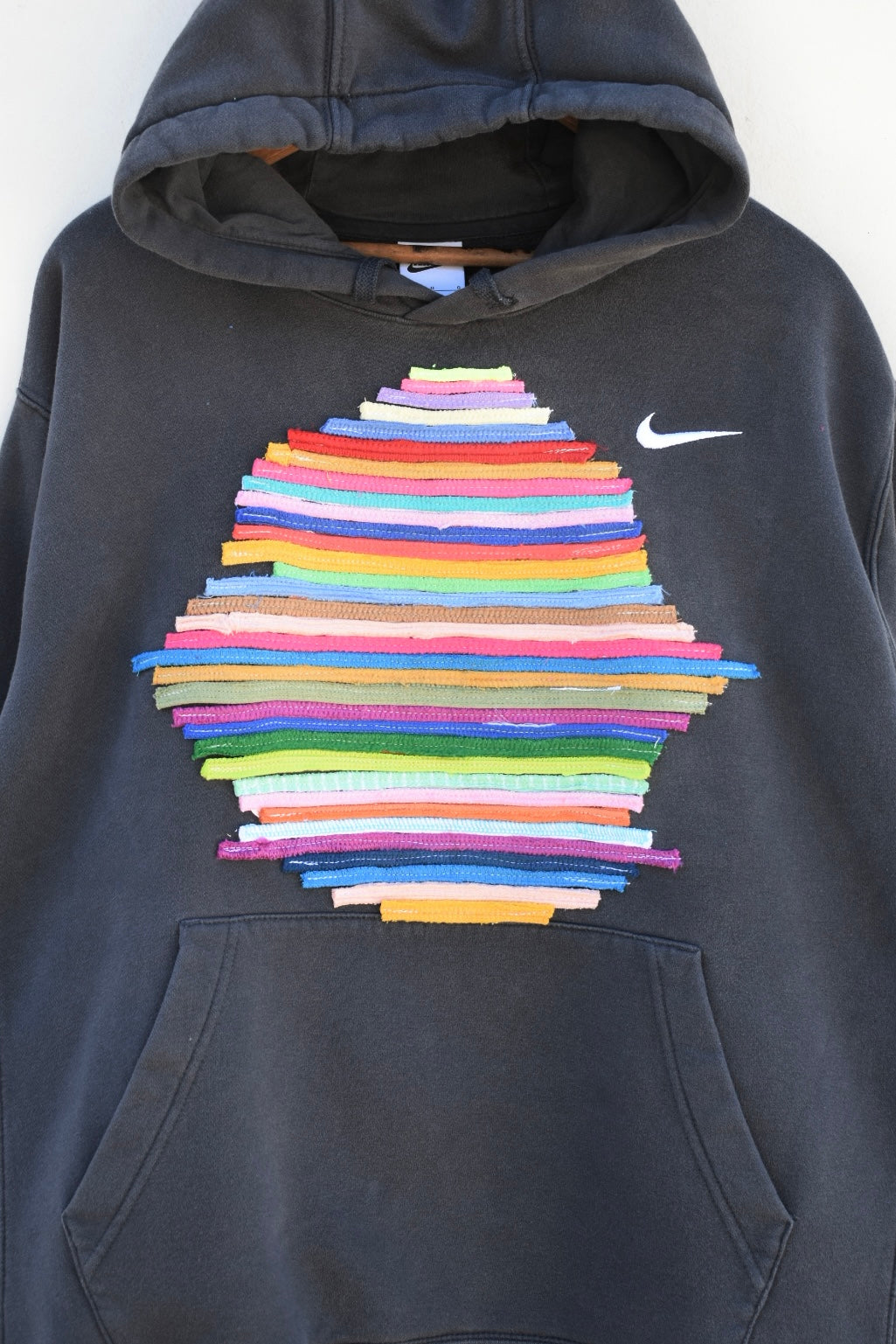Dark grey and colorful reworked hoodie