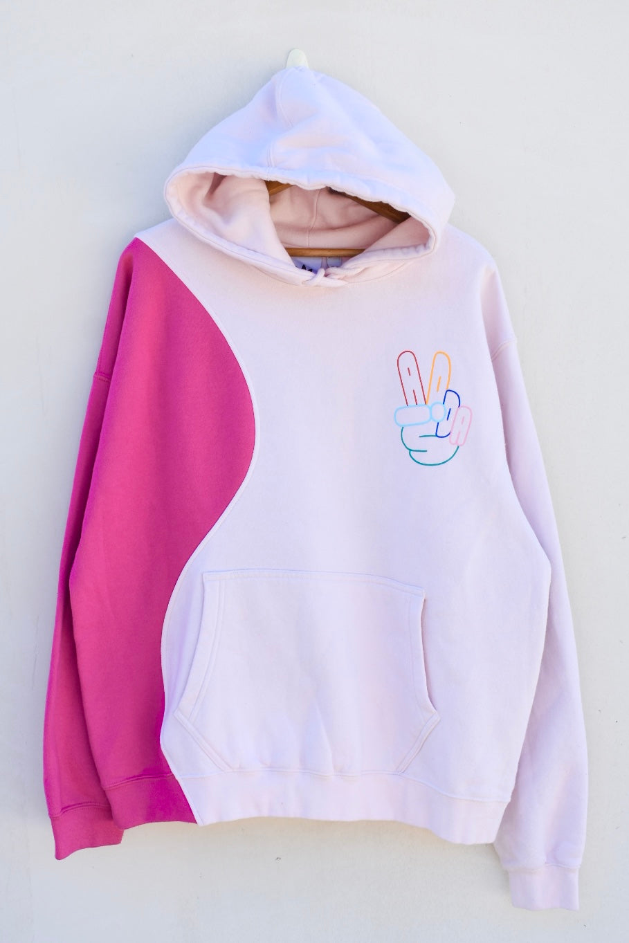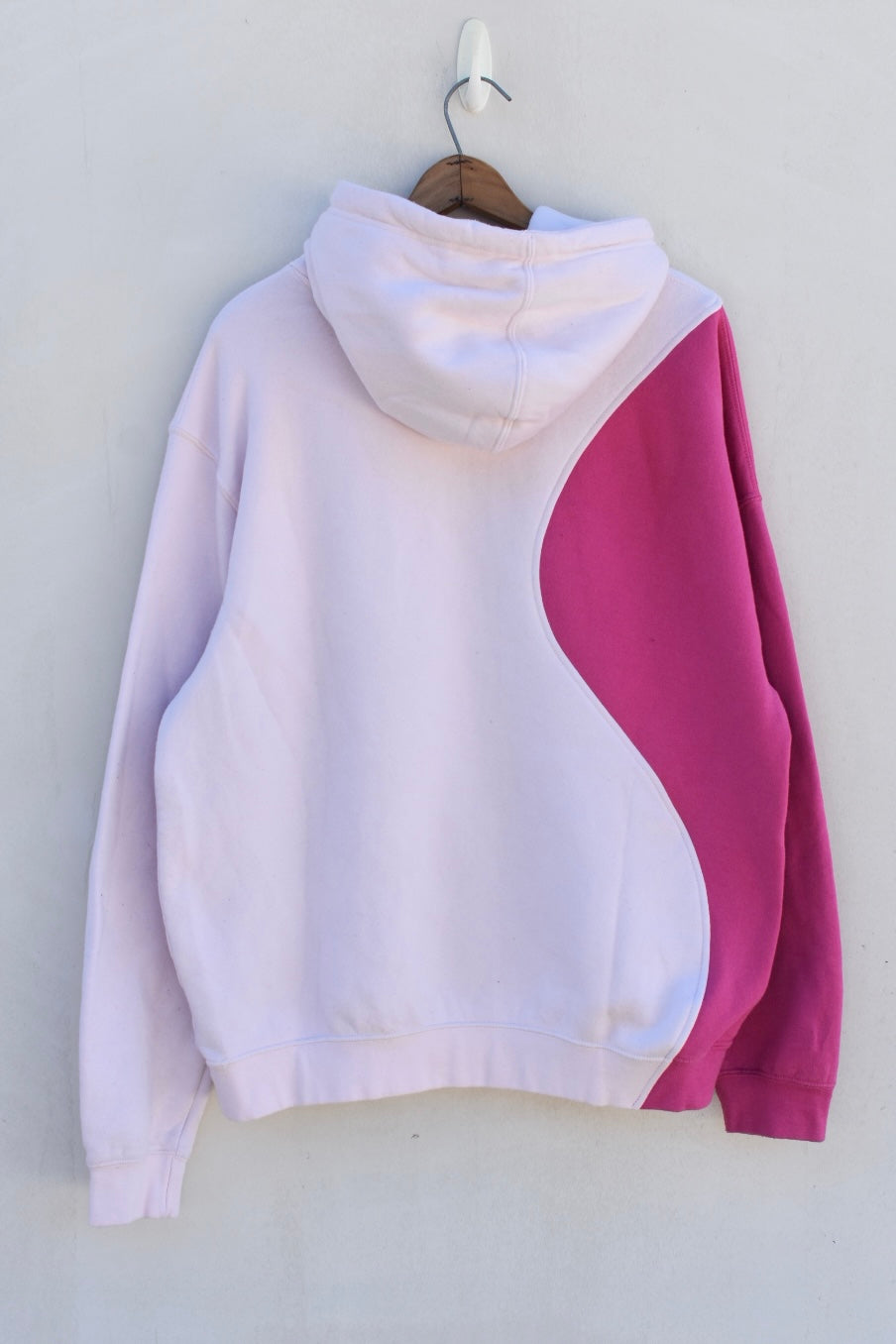 Light pink and dark pink reworked hoodie