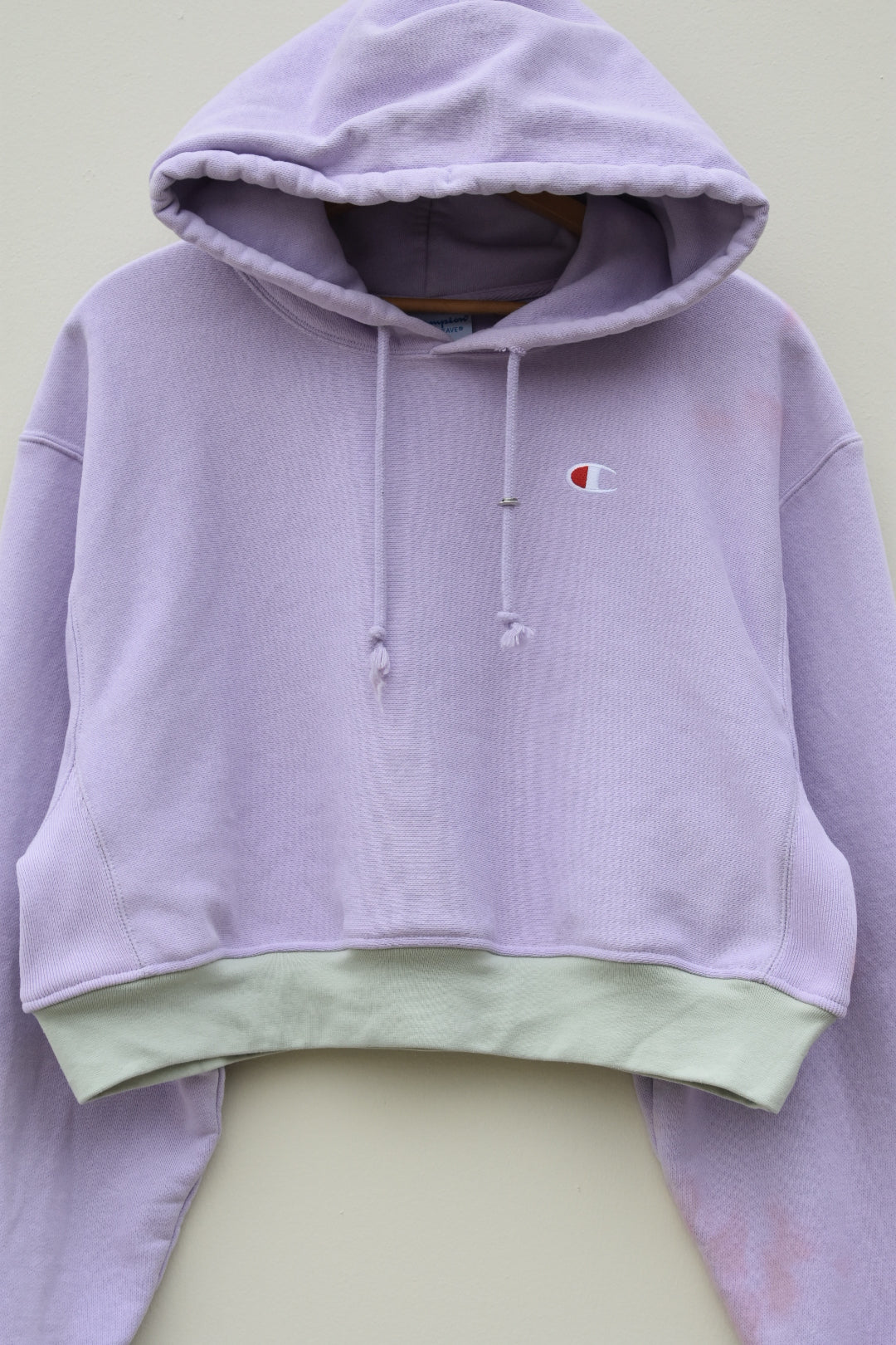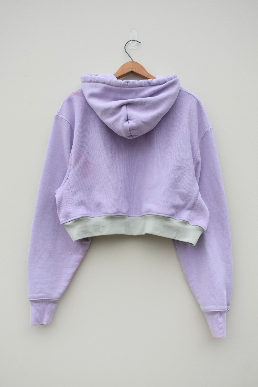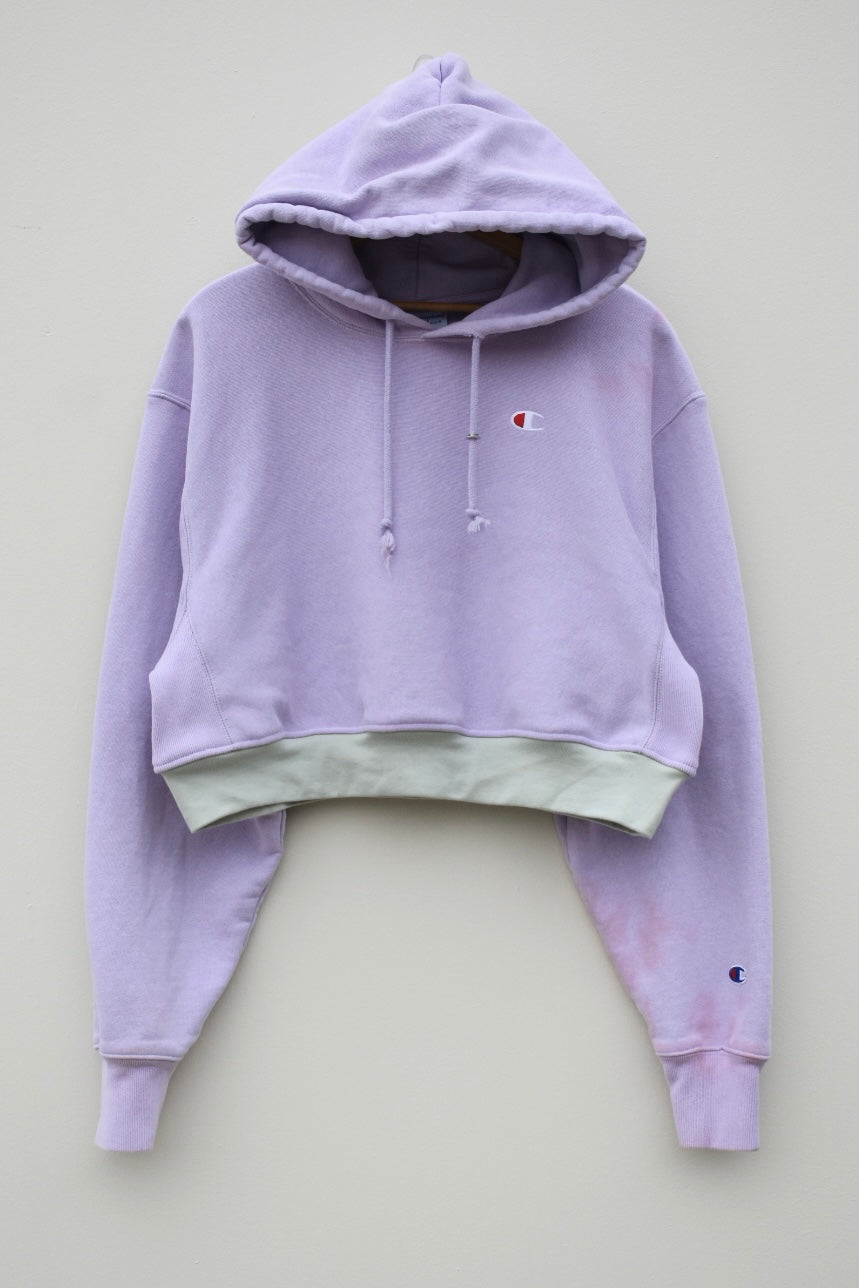 Purple and green reworked cropped hoodie