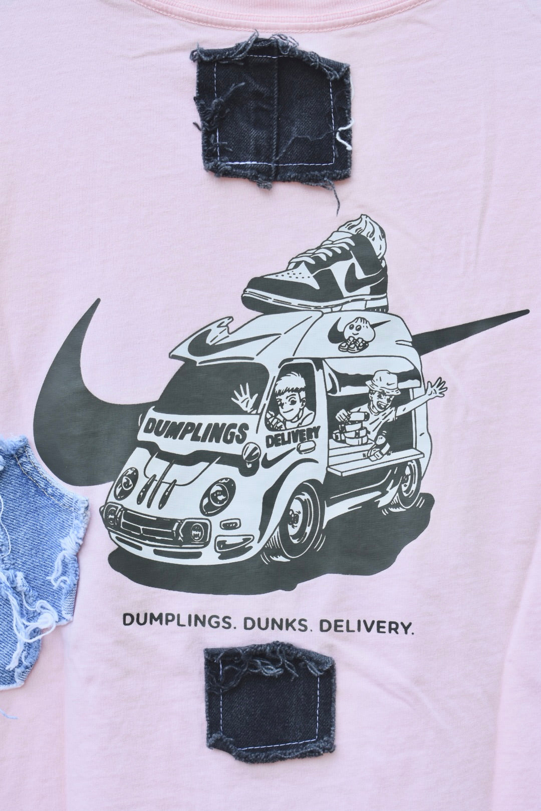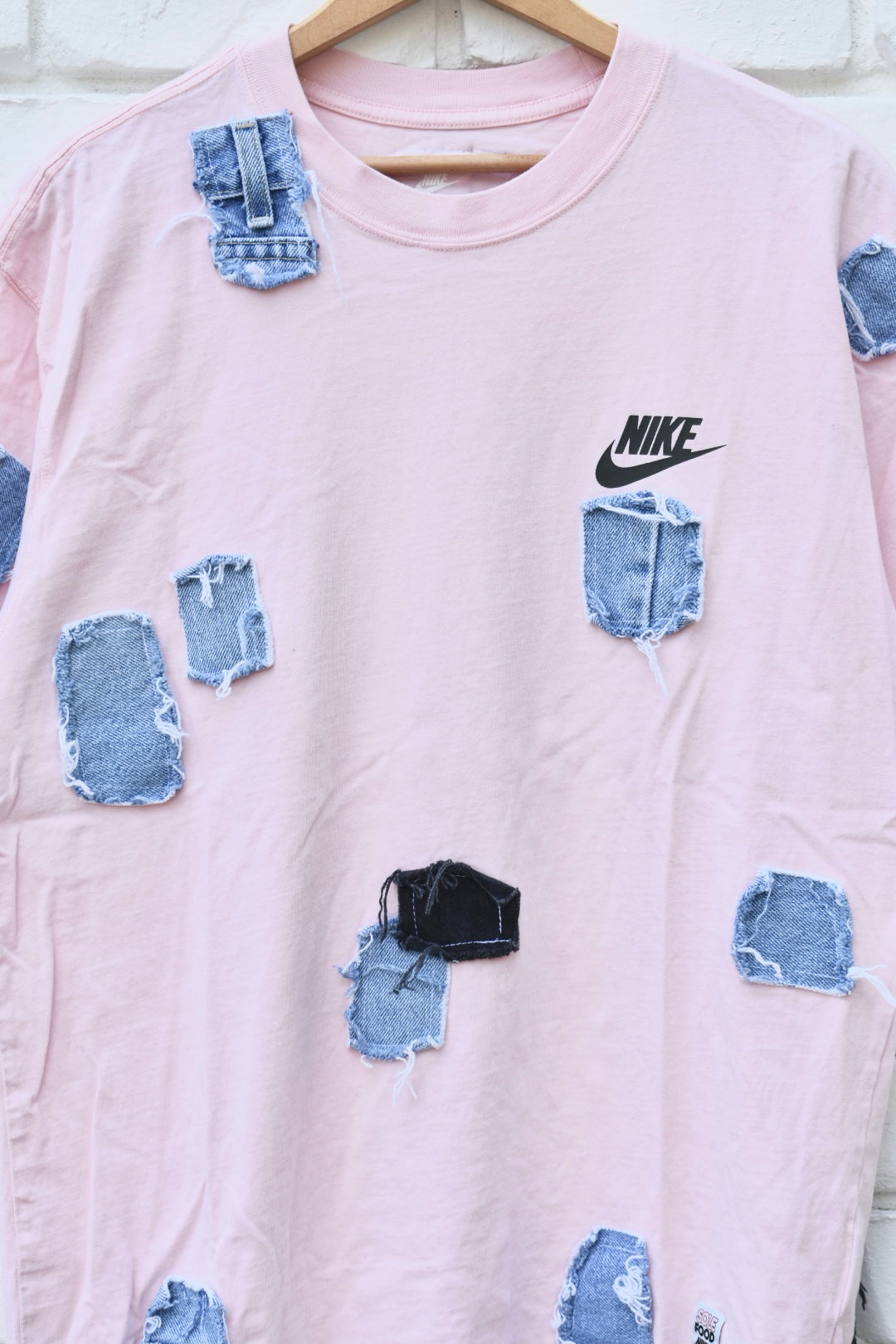 White and Blue and Black Denim Reworked T-Shirt