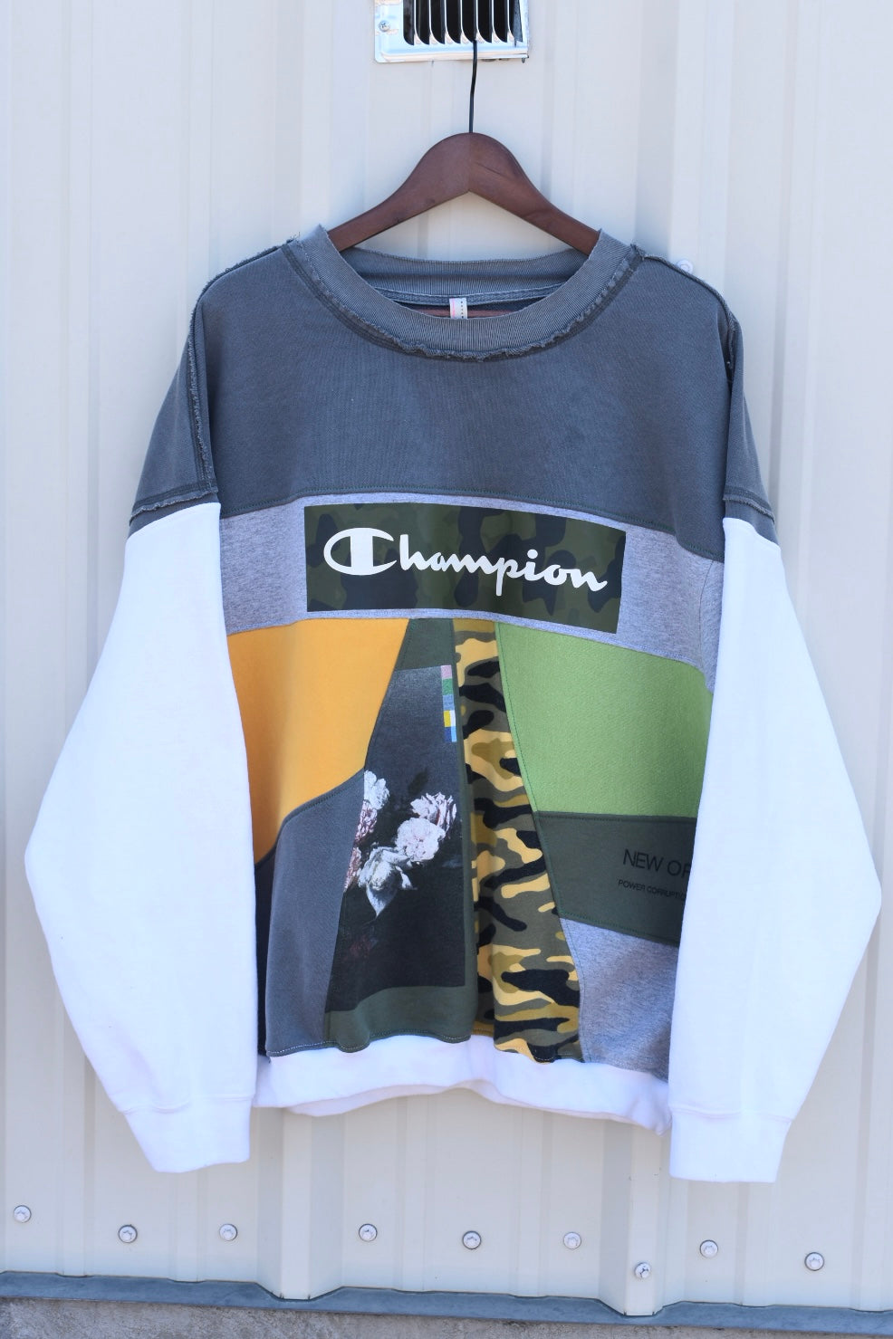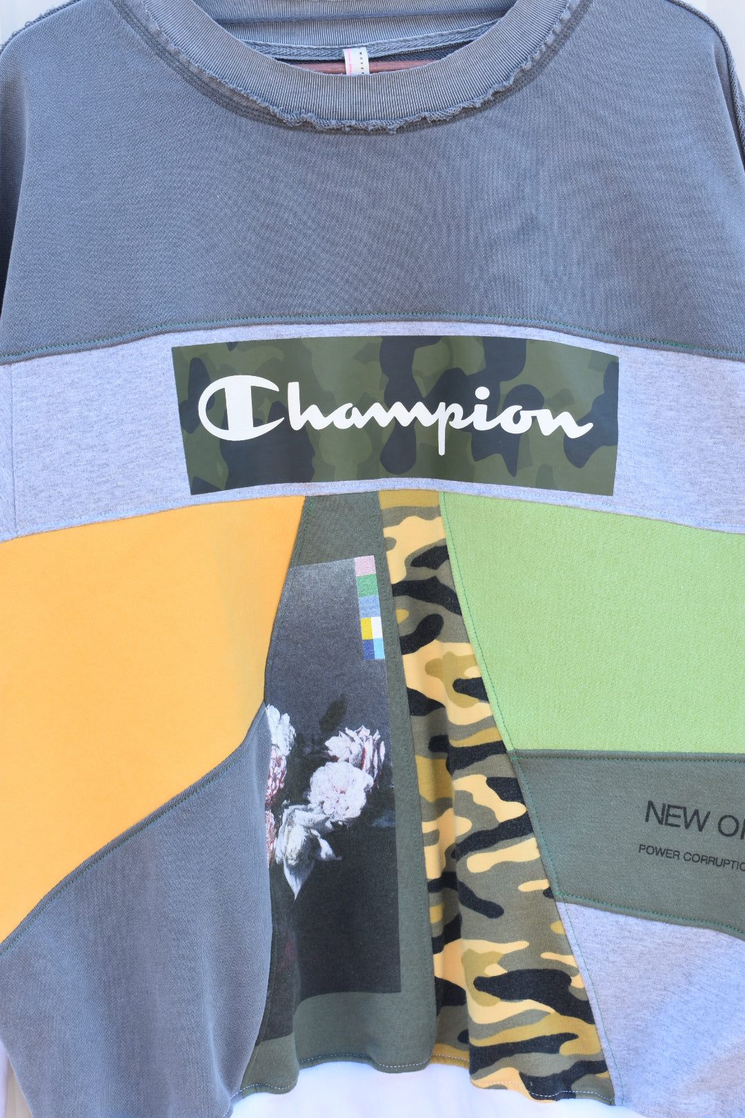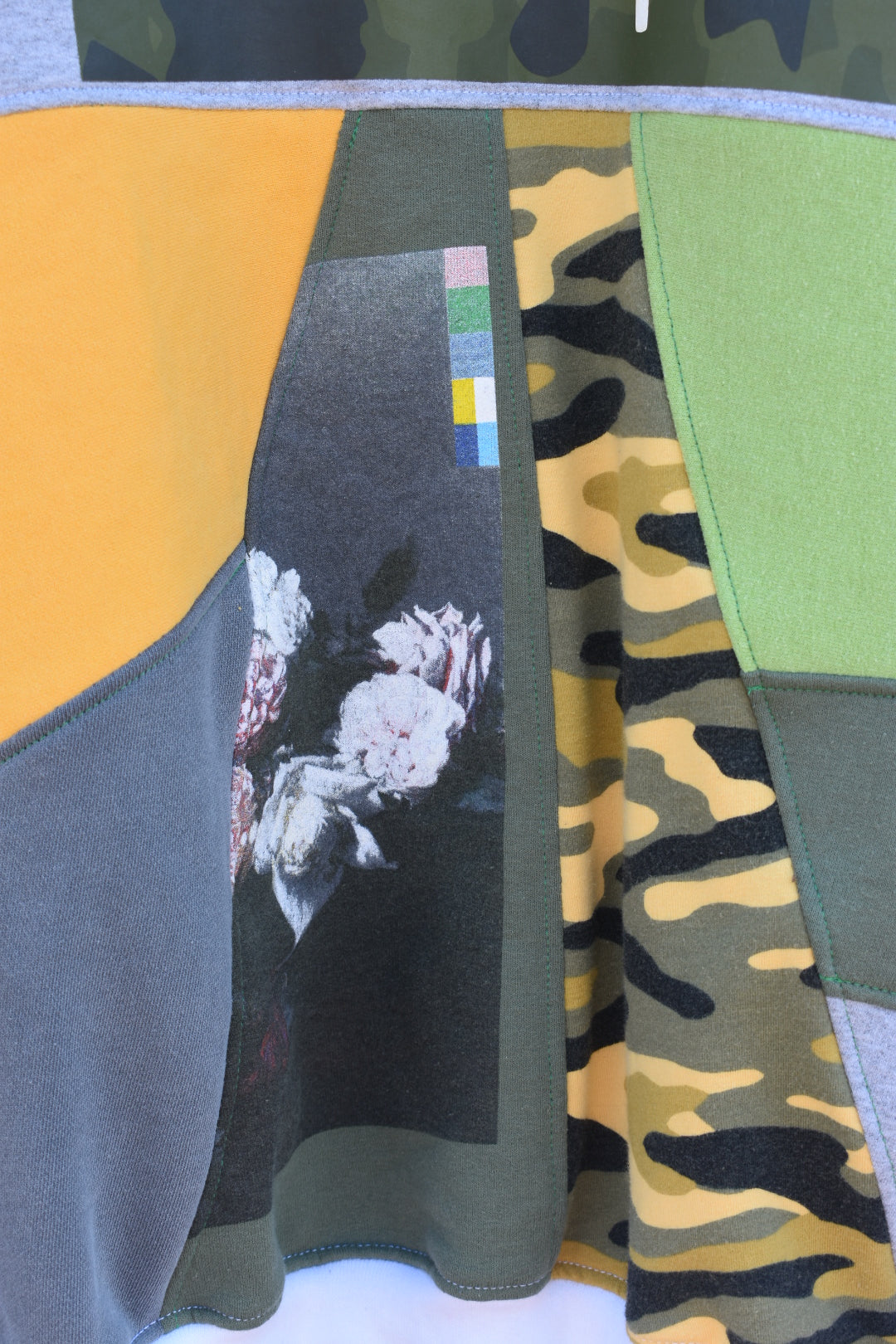 White, Green, Yellow, Camo and Grey Reworked Pullover