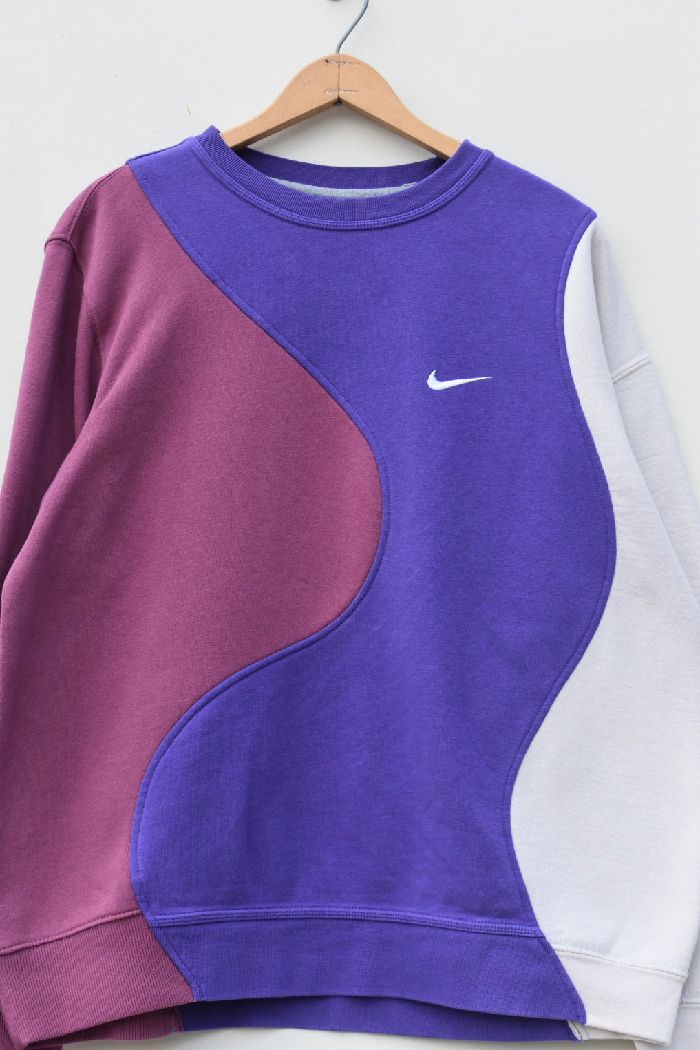 Two toned purple and tan reworked sweatshirt