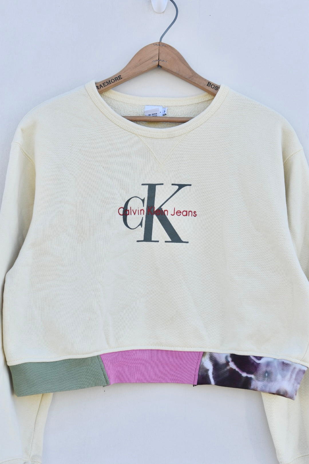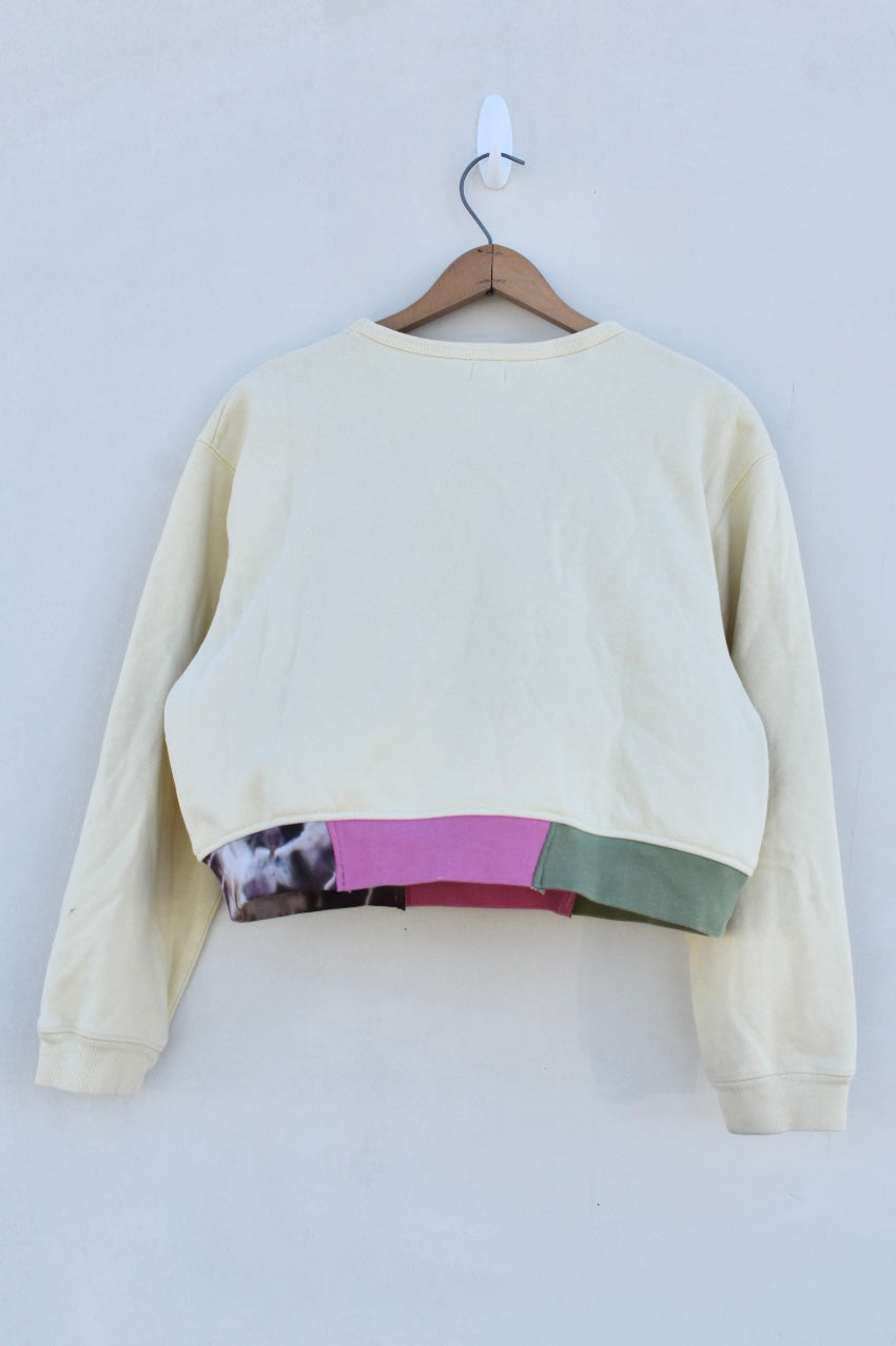 Yellow Green and Pink Reworked Cropped Sweatshirt