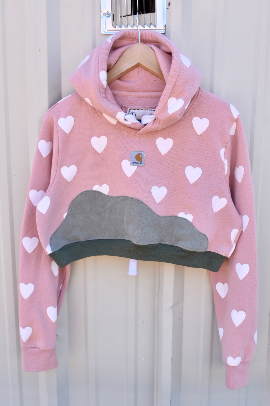 Pink Hearts and Green Reworked Super Cropped Hoodie