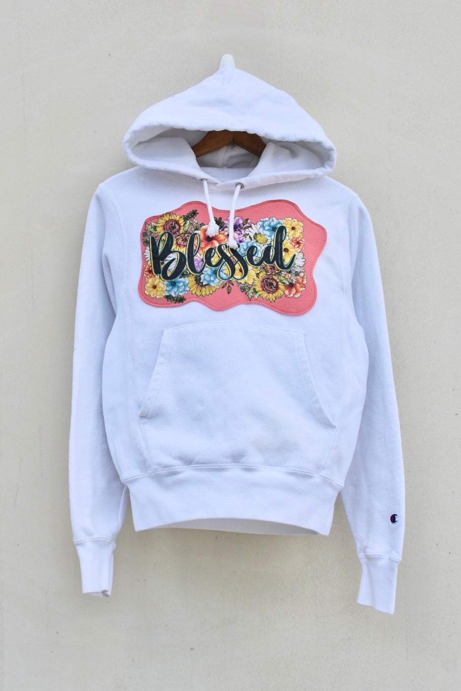 White and pink reworked hoodie