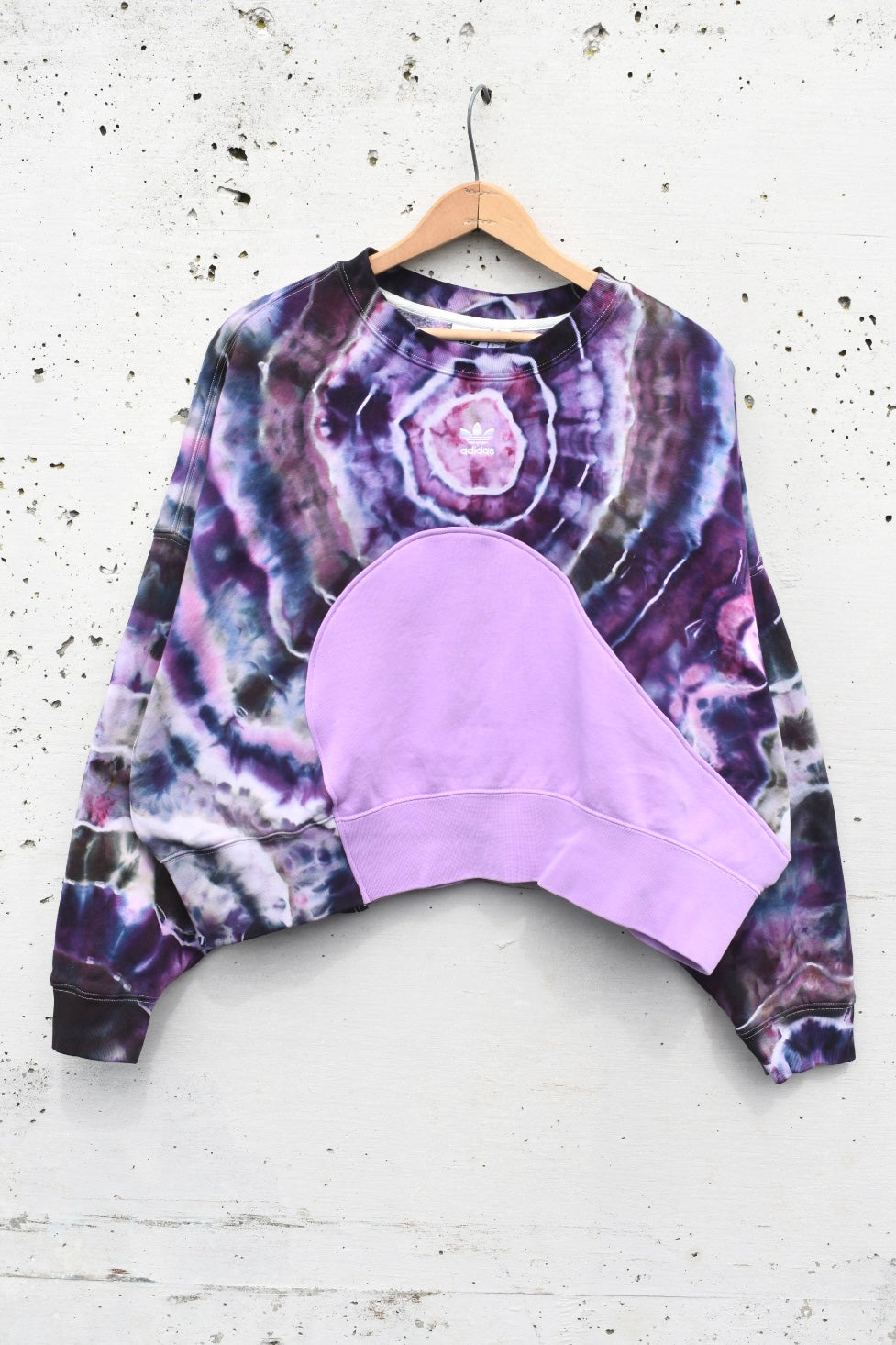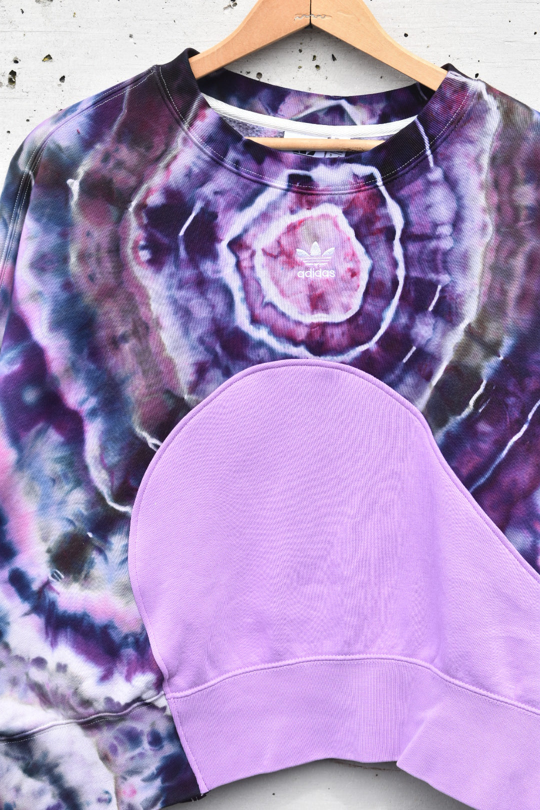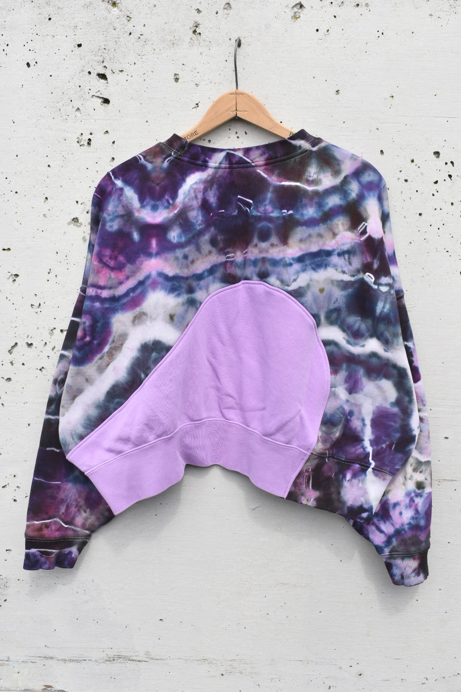 Purple and Tie Dye Reworked Cropped Sweatshirt
