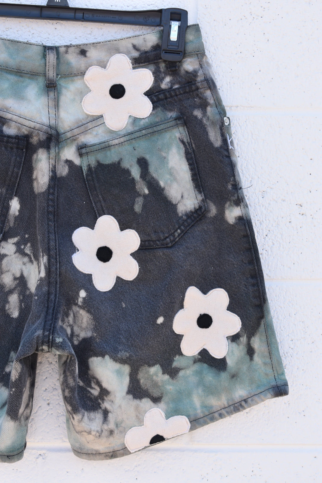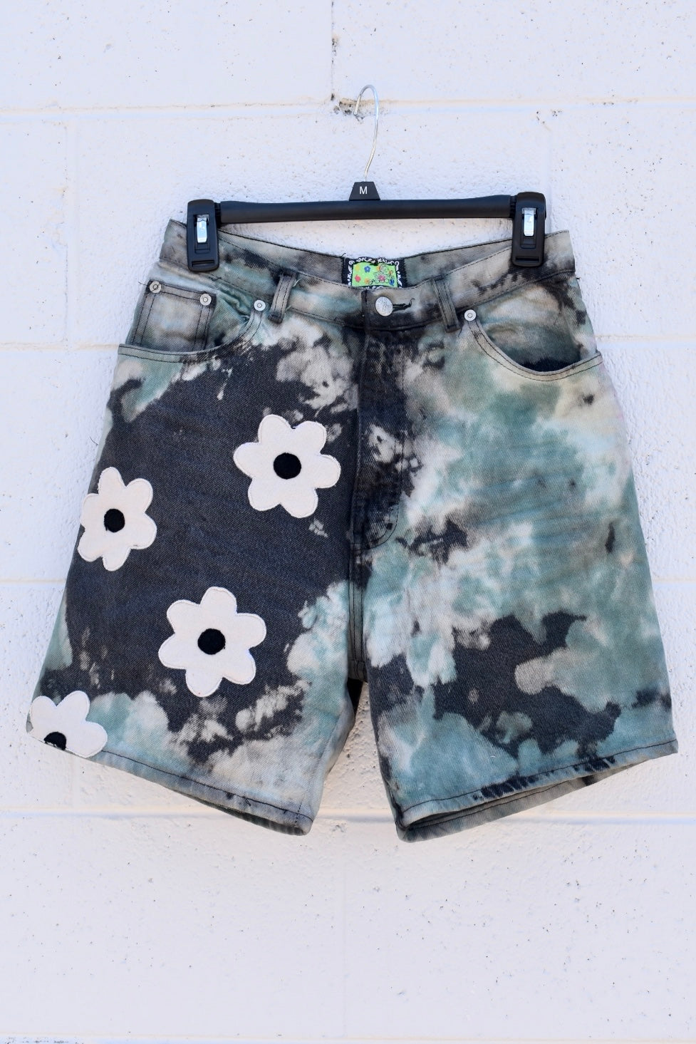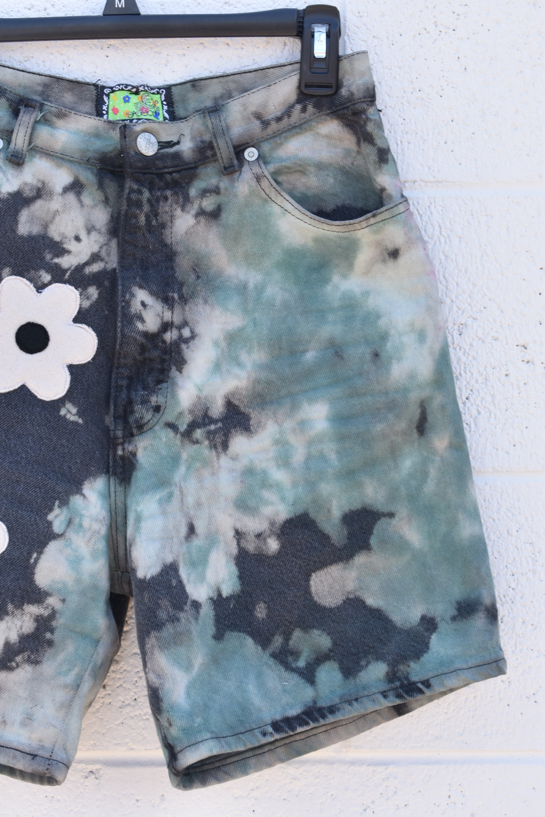 Black Reverse Dyed and Green Reworked Bermuda Shorts