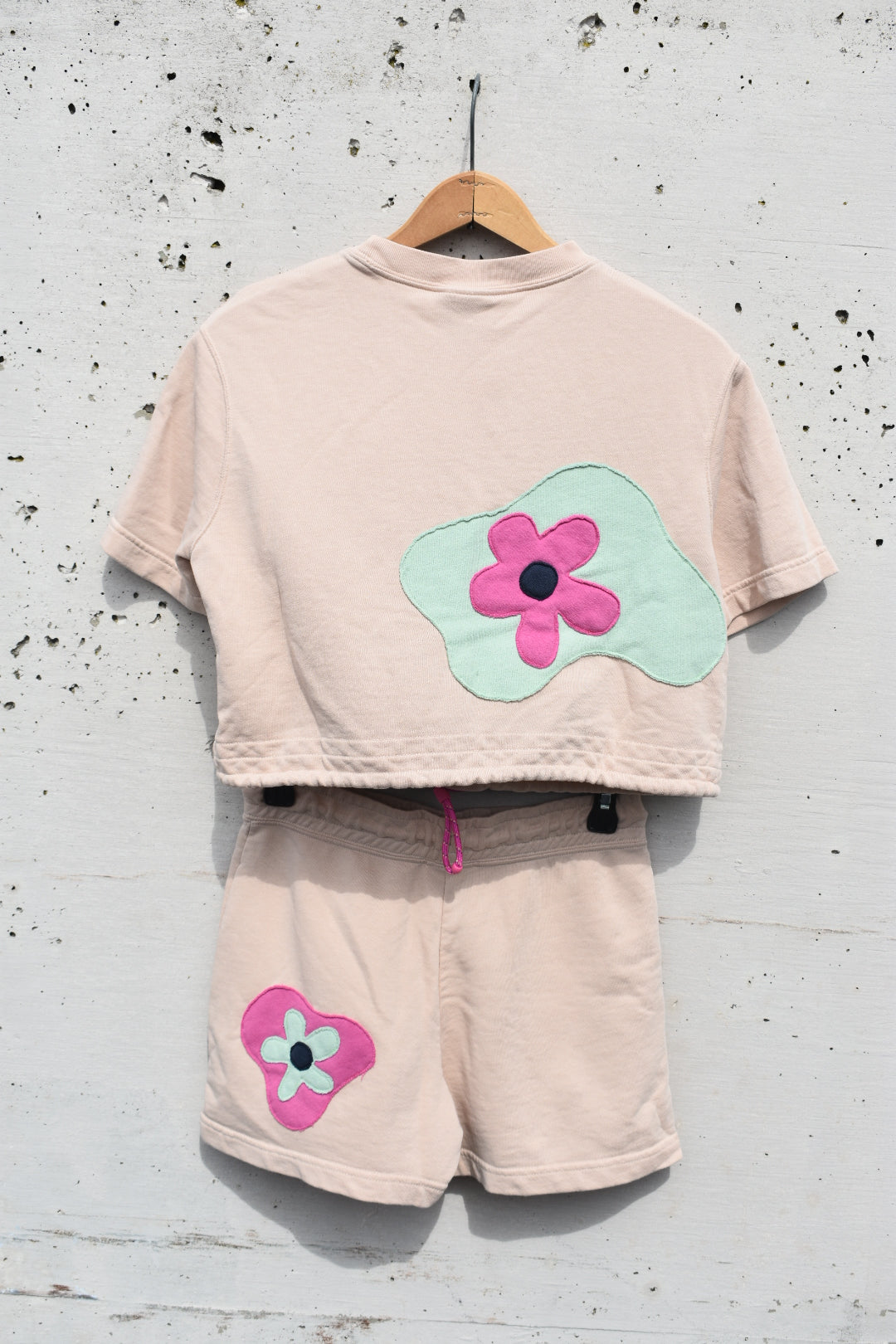 Light Pink Reworked Cropped Top and Shorts Set