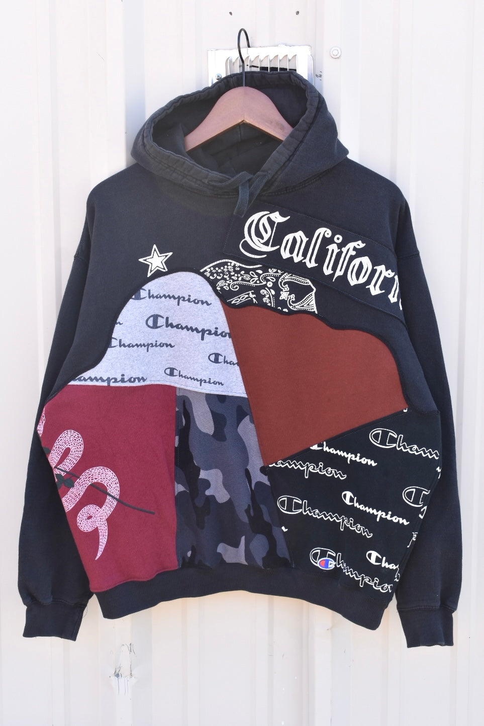 Black, Grey, Burnt Orange, Maroon and Camo Reworked Hoodie