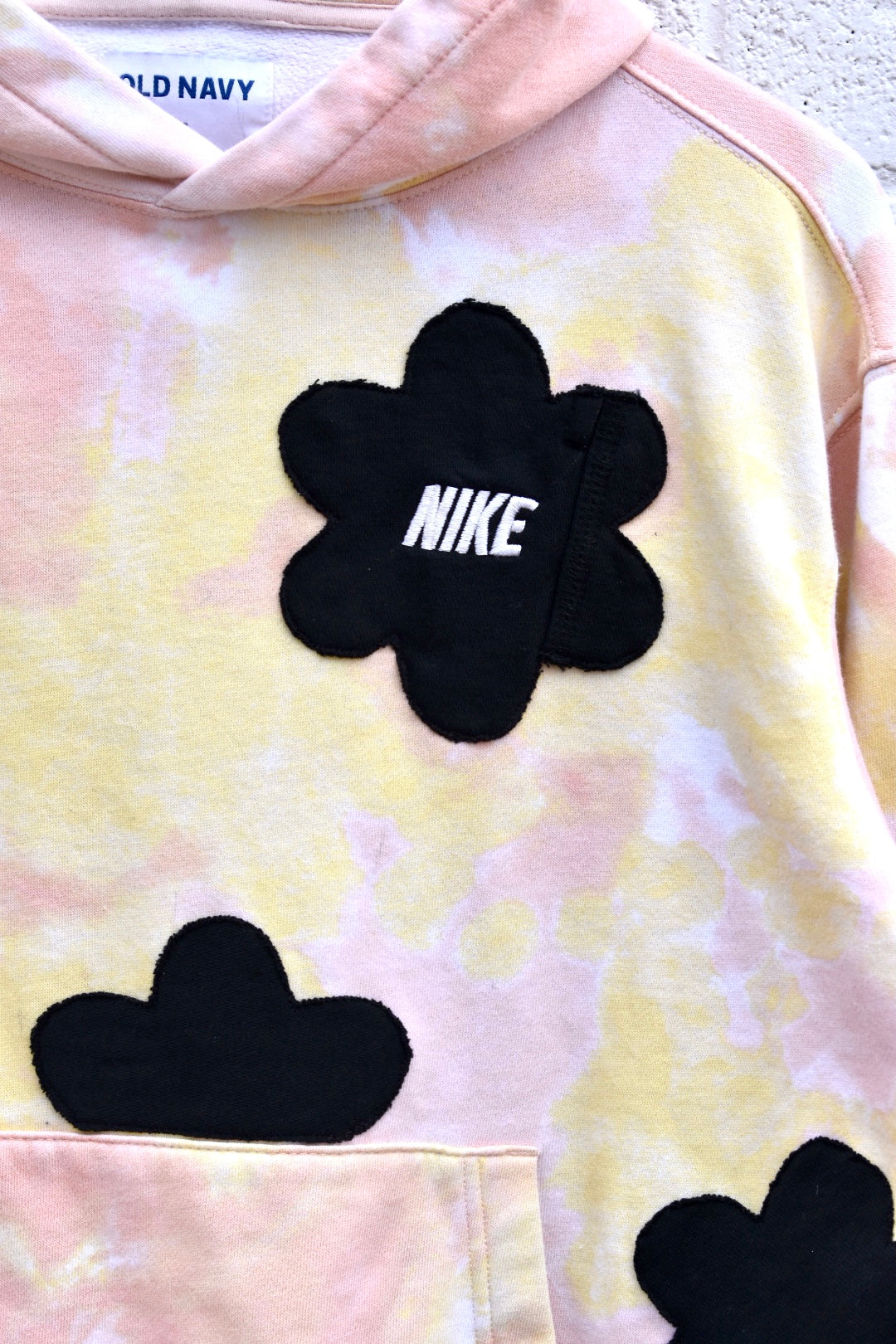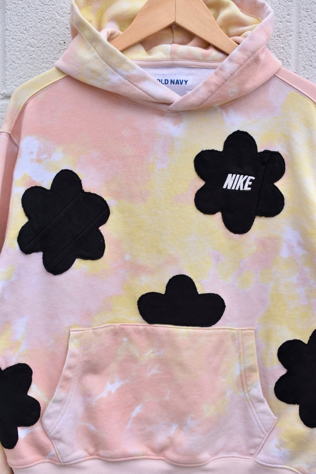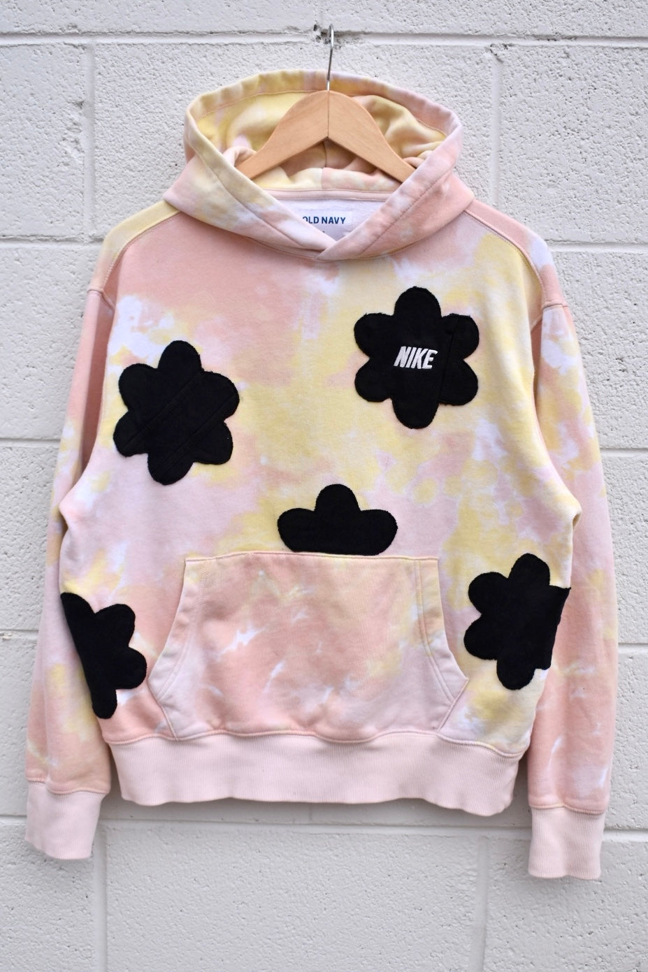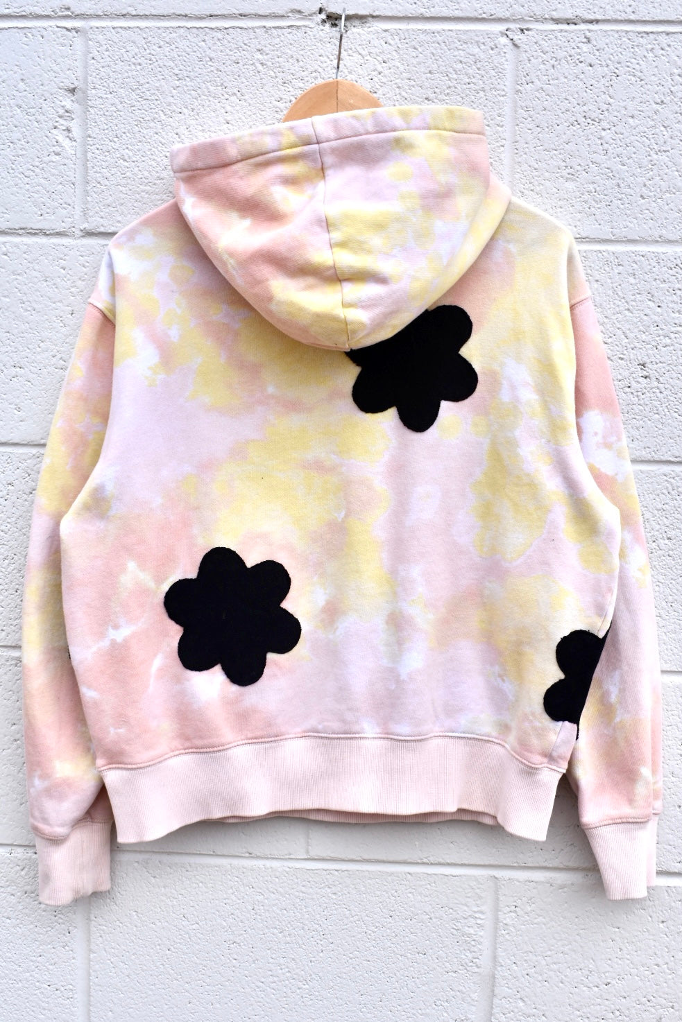 Orange and Yellow Tie Dye and Black Reworked Hoodie