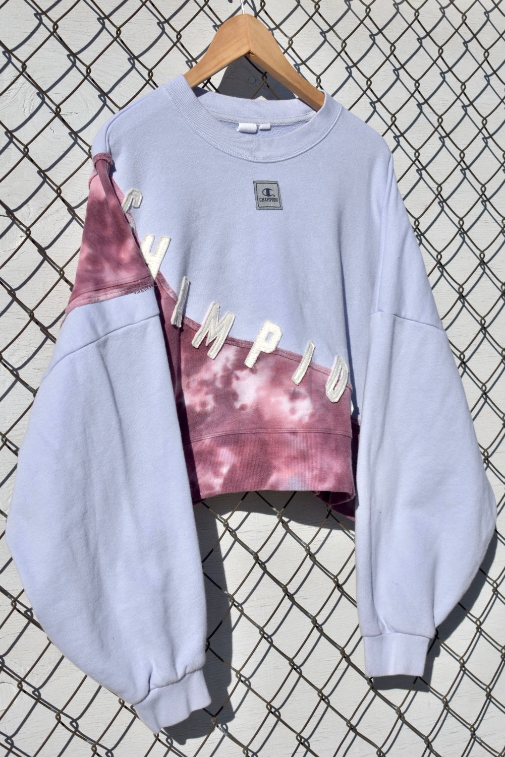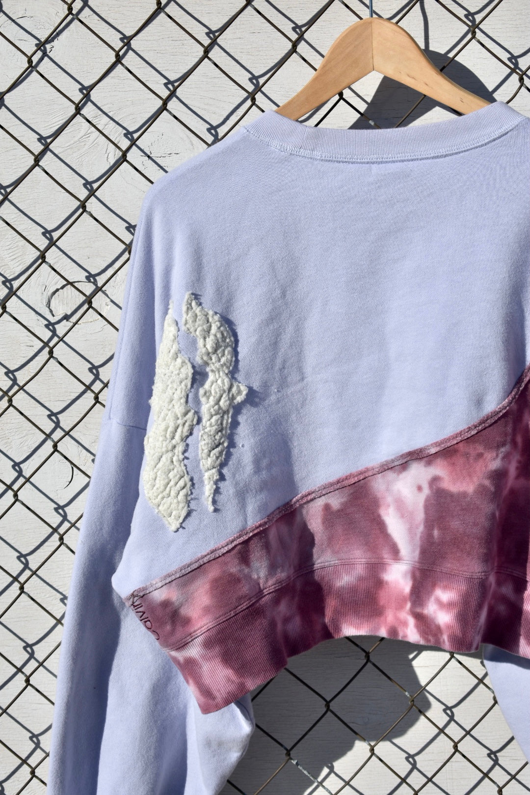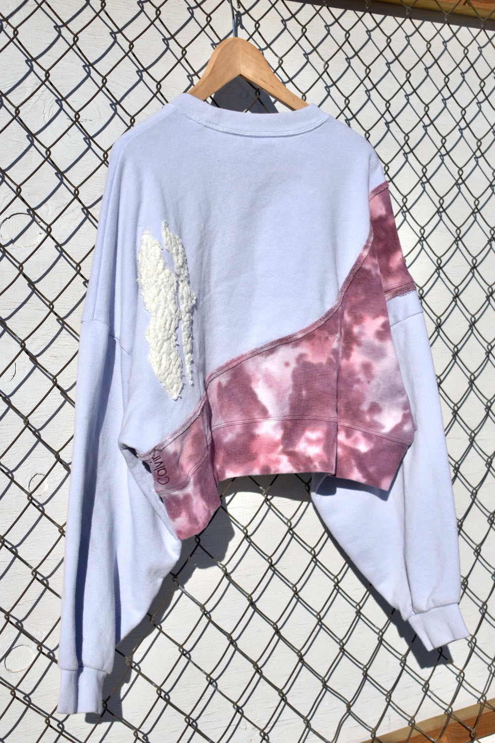 Pale Blue and Tie Dye Reworked Cropped Pullover