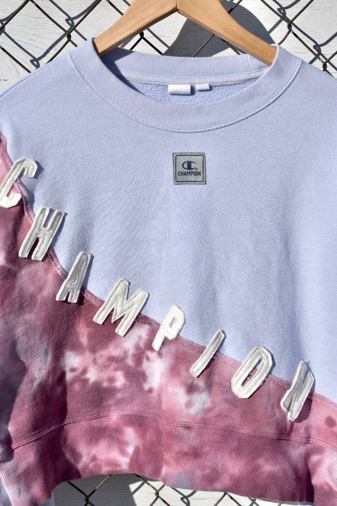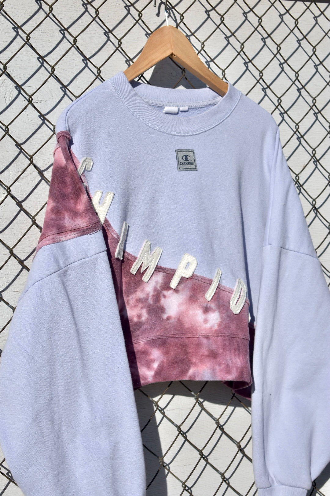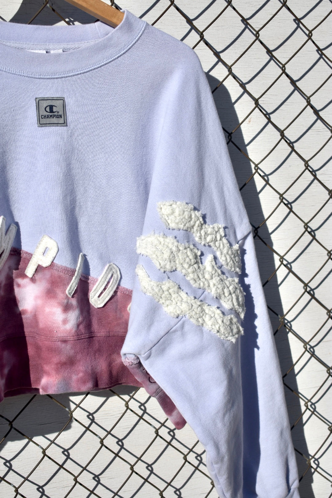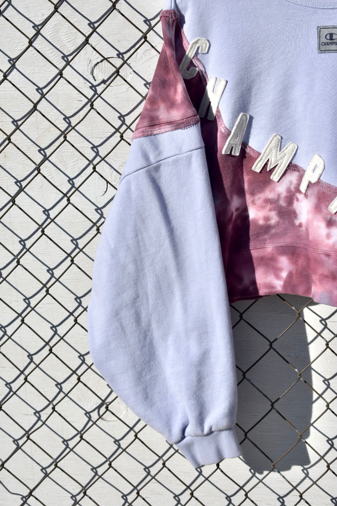 Pale Blue and Tie Dye Reworked Cropped Pullover