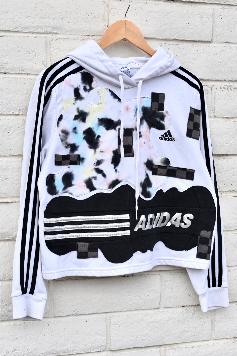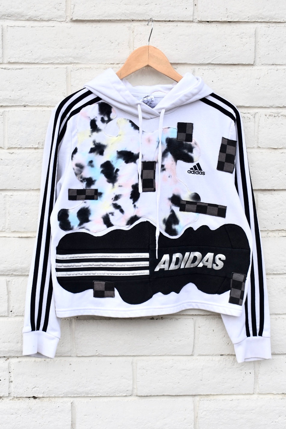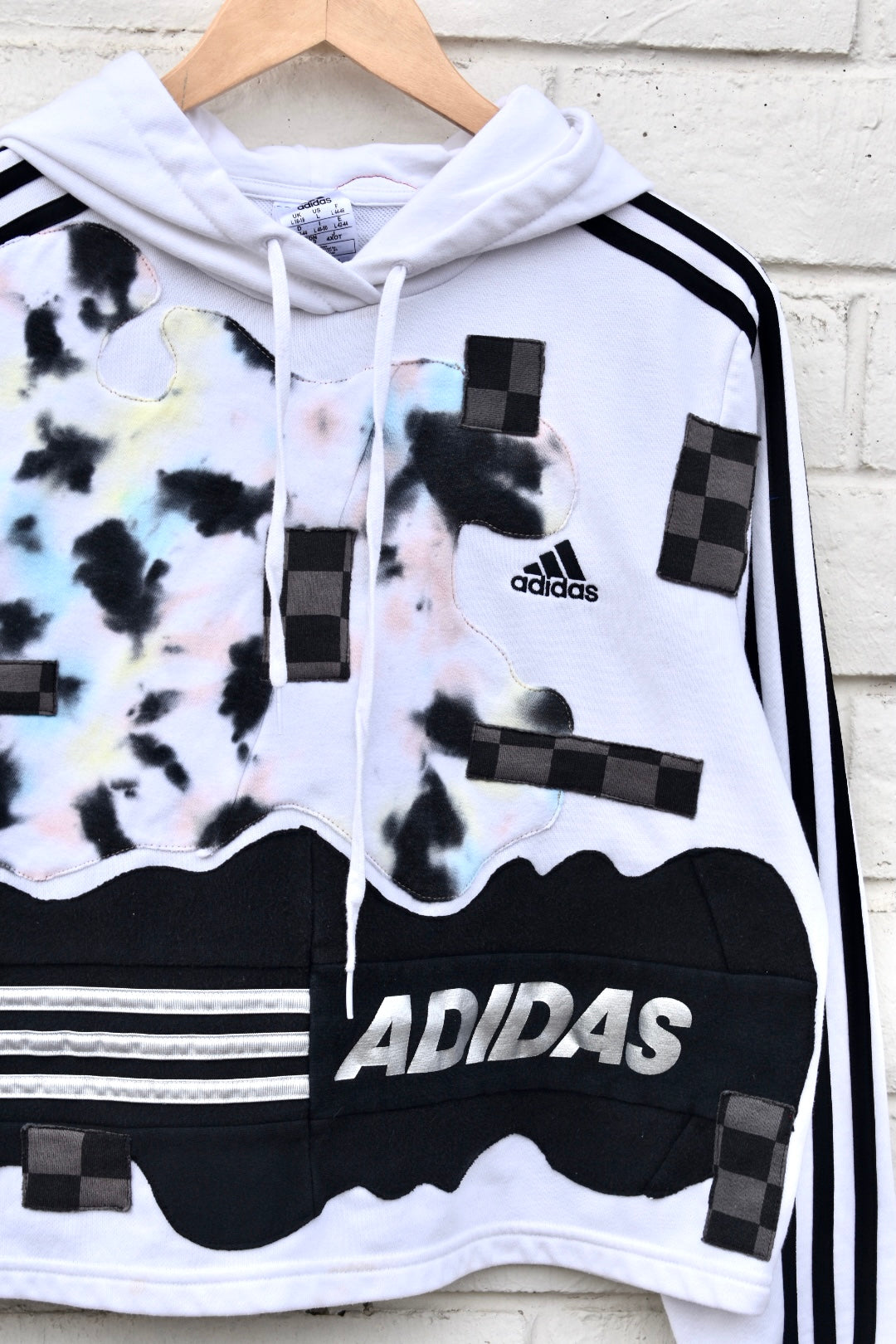 White, Black, Checkered and Multicolored Tie Dyed Reworked Shortened Hoodie