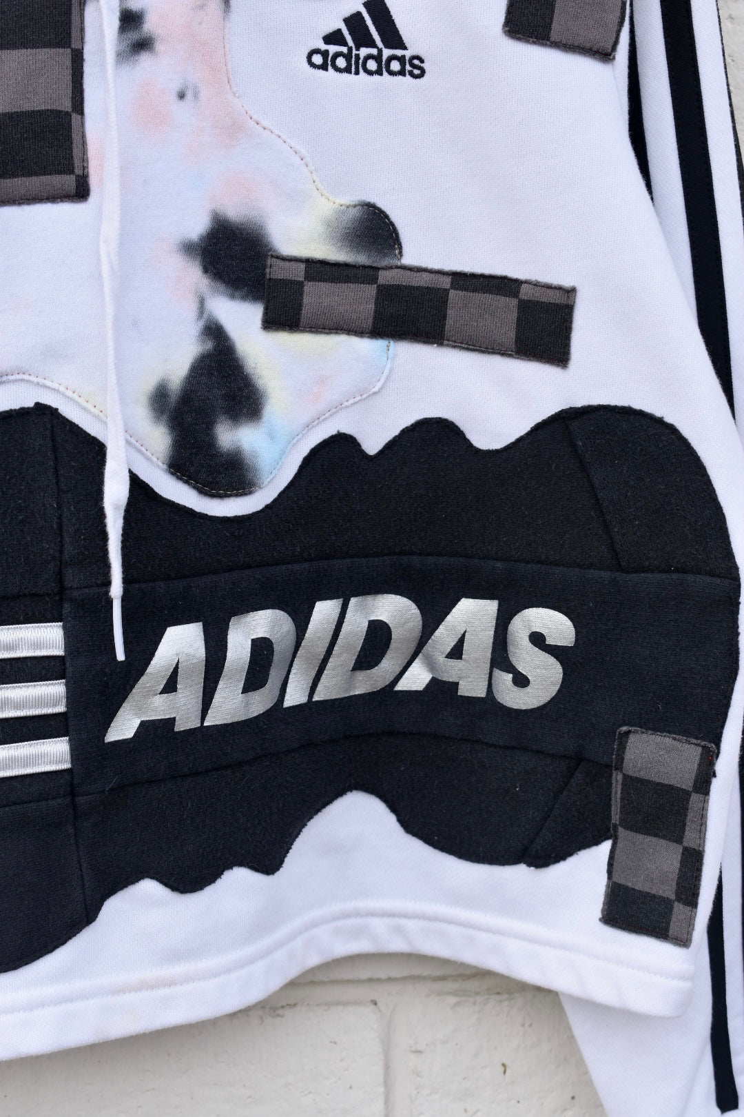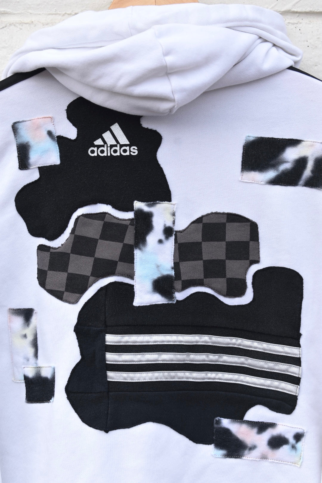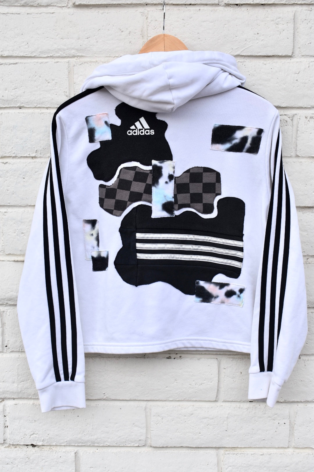 White, Black, Checkered and Multicolored Tie Dyed Reworked Shortened Hoodie