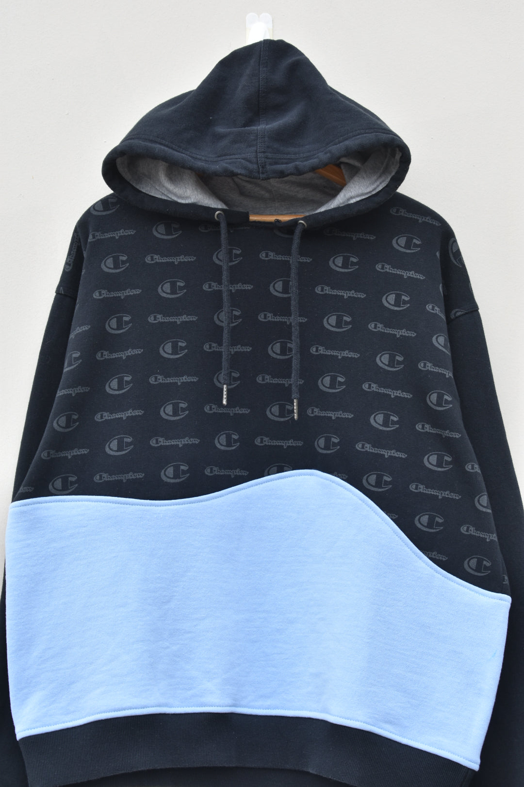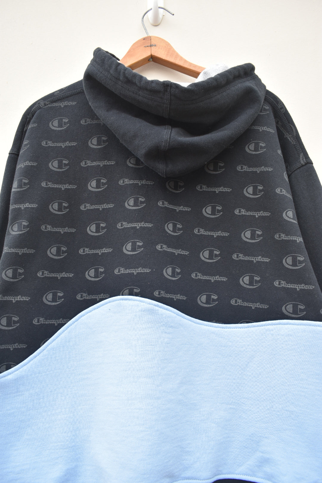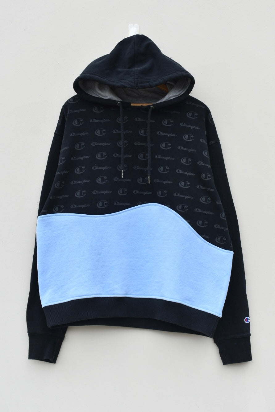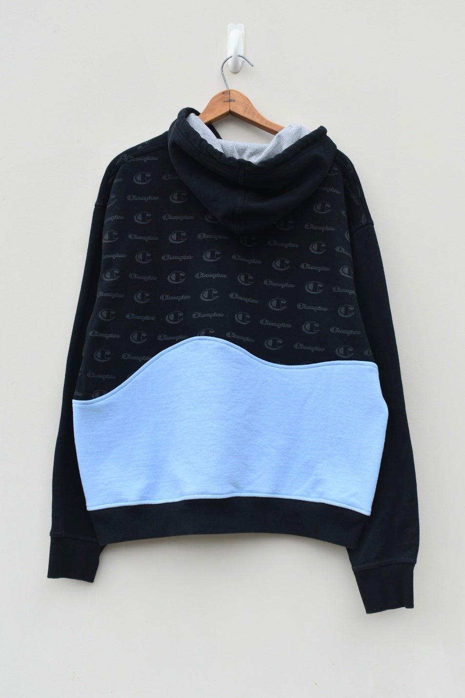 Black and light blue reworked hoodie