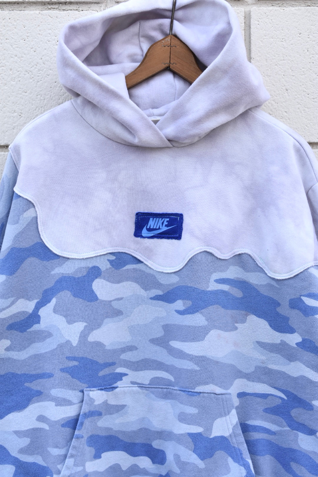 Blue Camo and Light Purple Tie Dye Reworked Hoodie