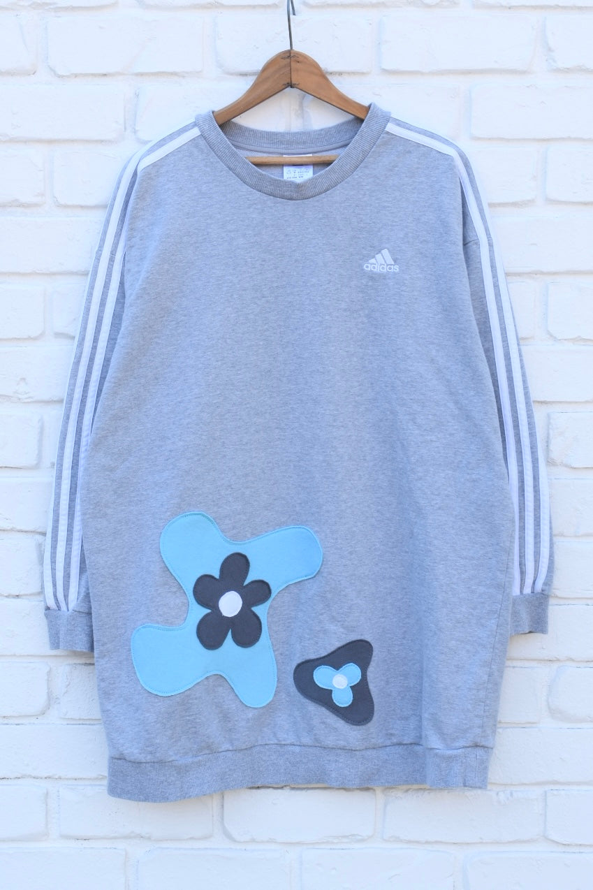 Grey and Blue Reworked Sweatshirt DRESS
