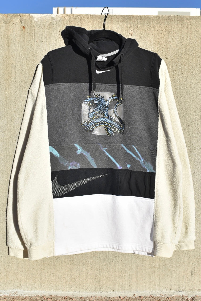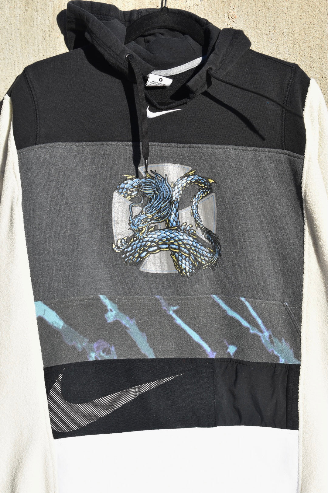 Black, Grey, White, Cream and Graphic Reworked Hoodie