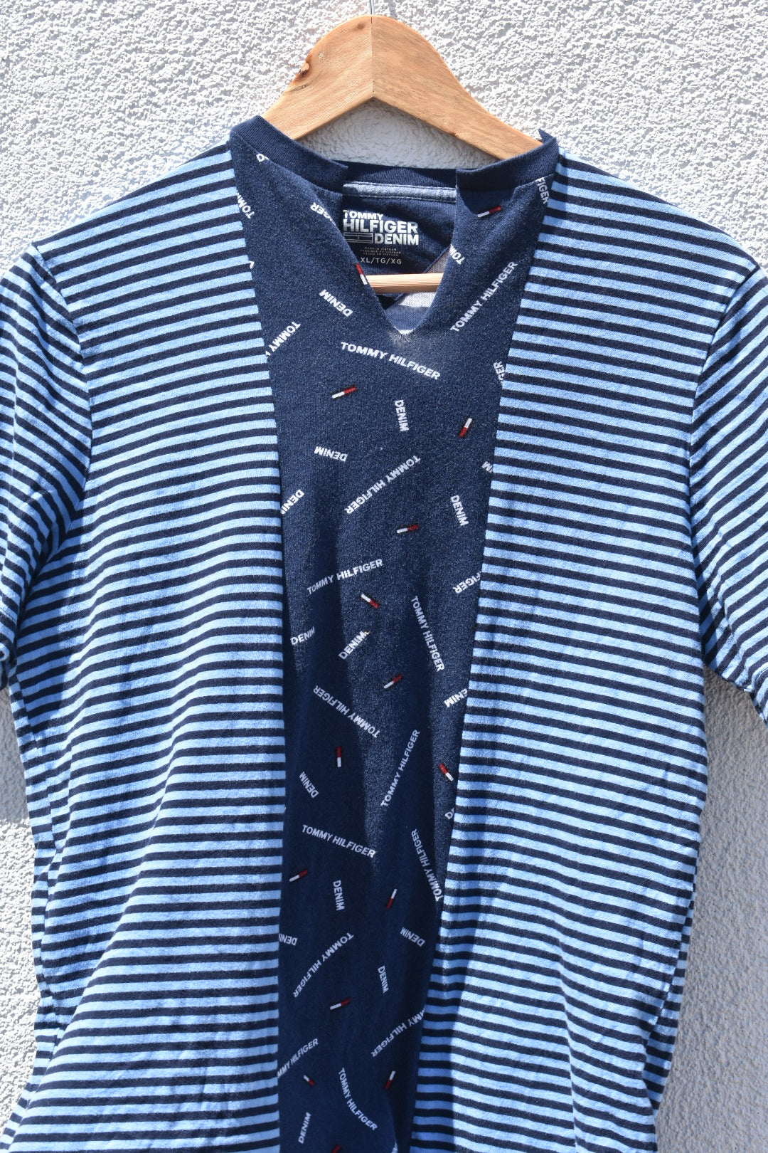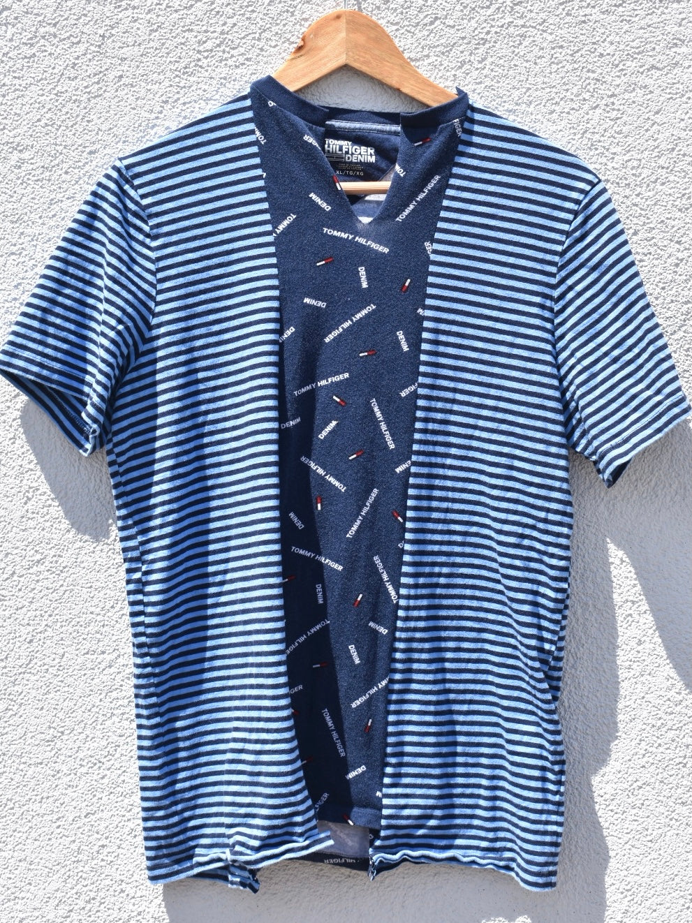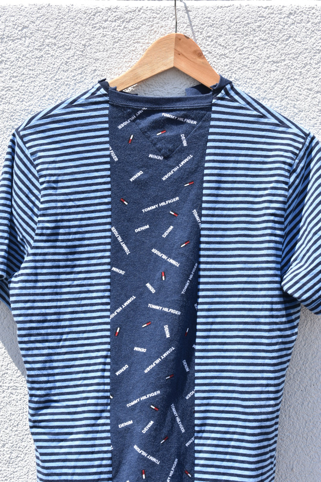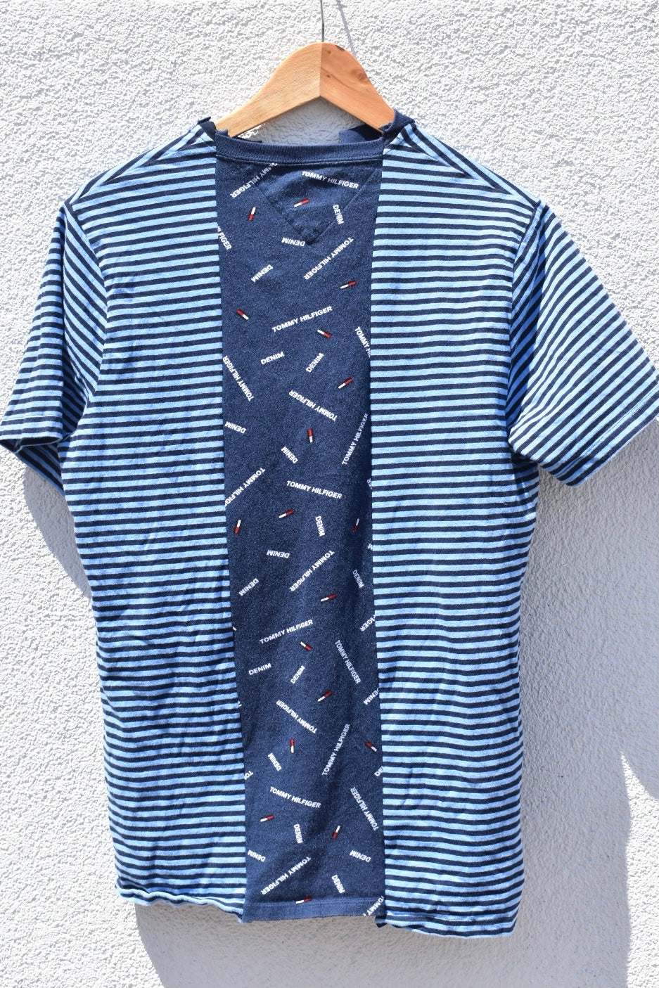 Dark Blue and Baby Blue Reworked Patterned Tee