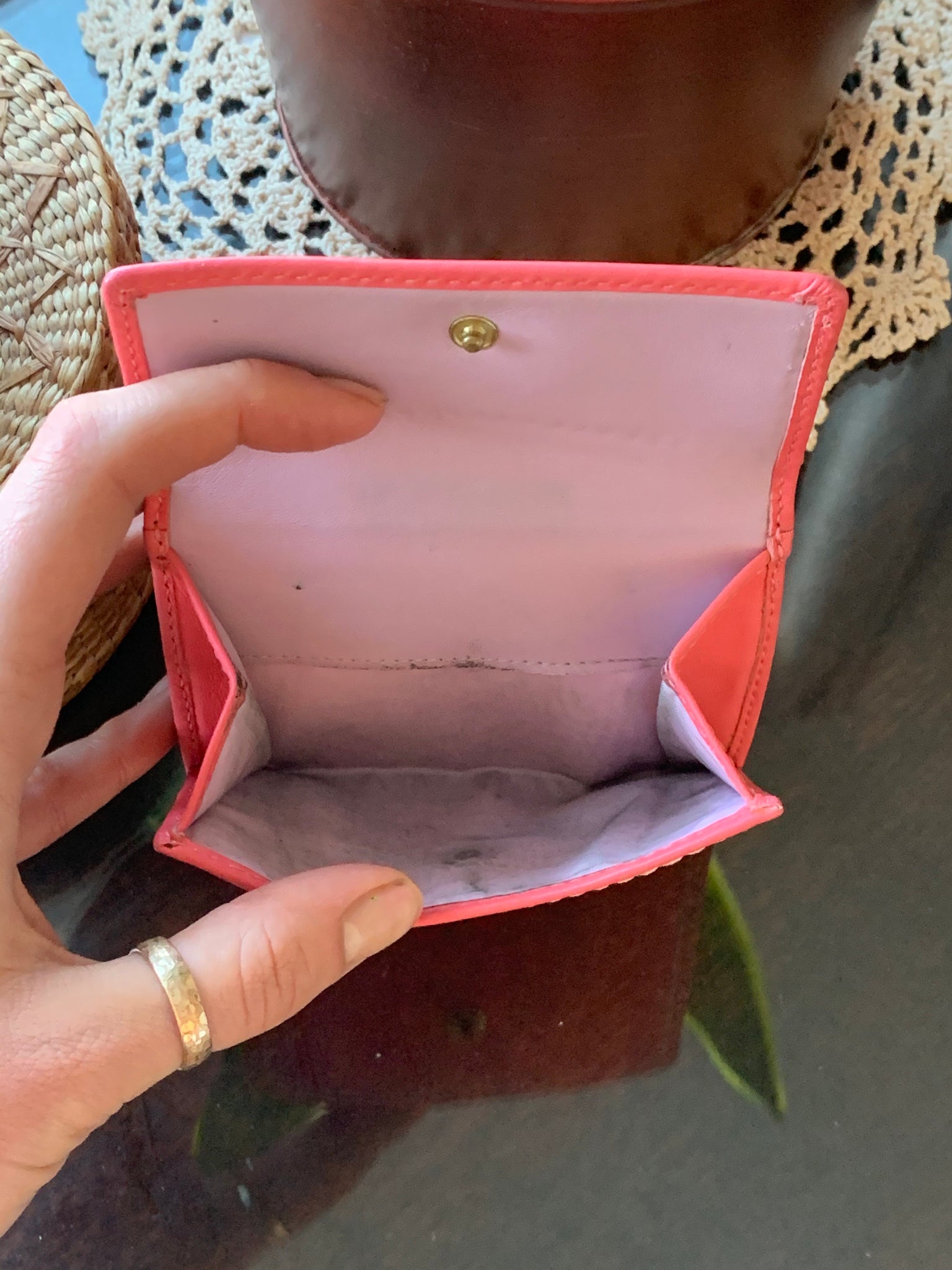 Coach foldable wallet! Folds up small and opens to the size of an regular wallet. This wallet has many card holders!