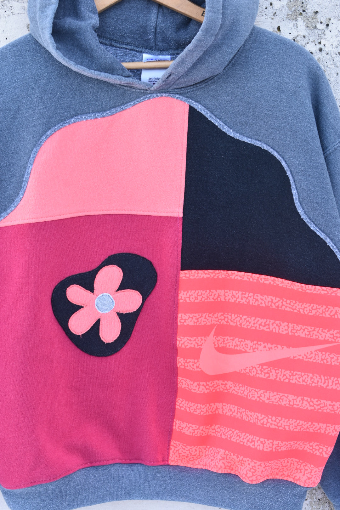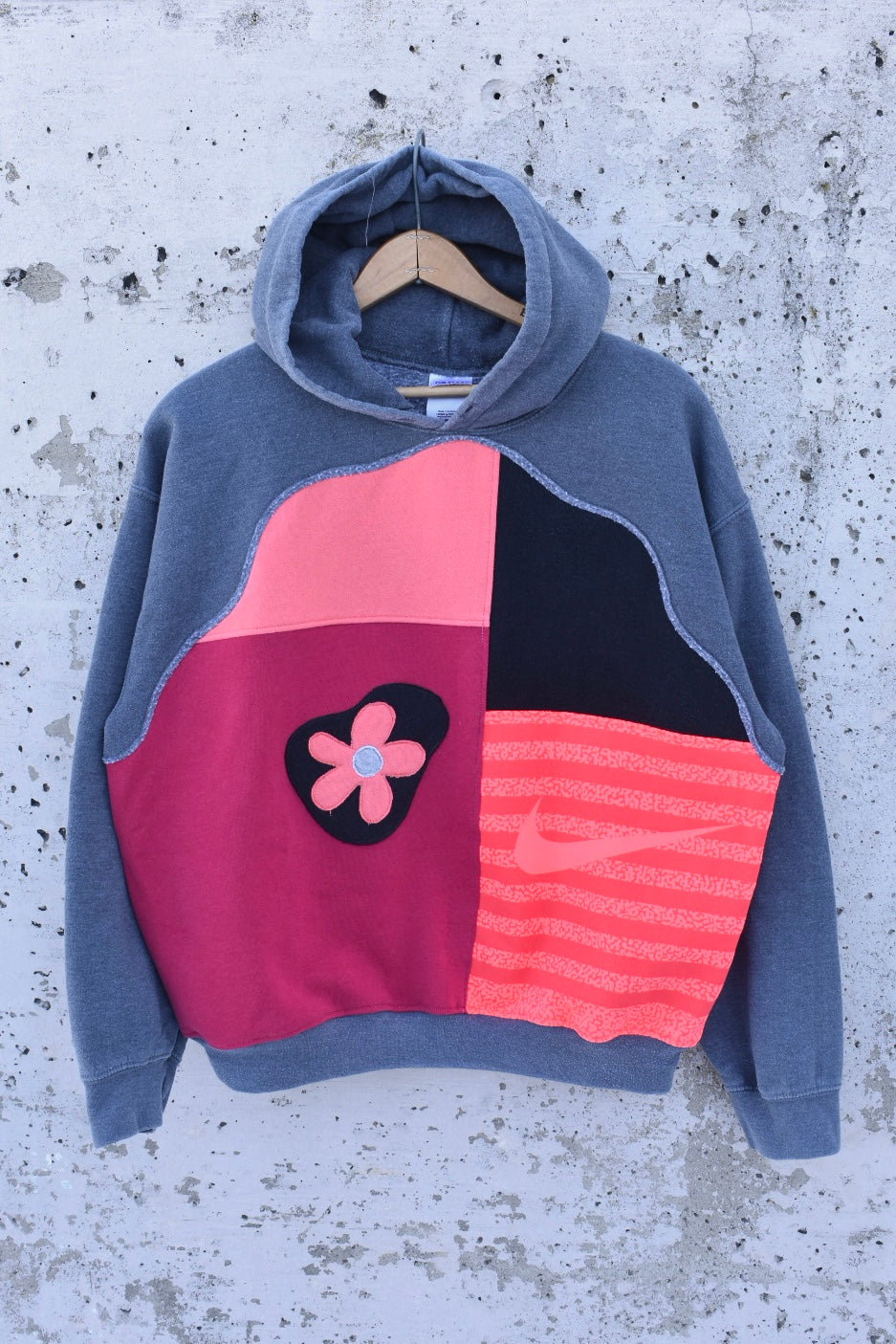 Grey Black and Pink Reworked Hoodie