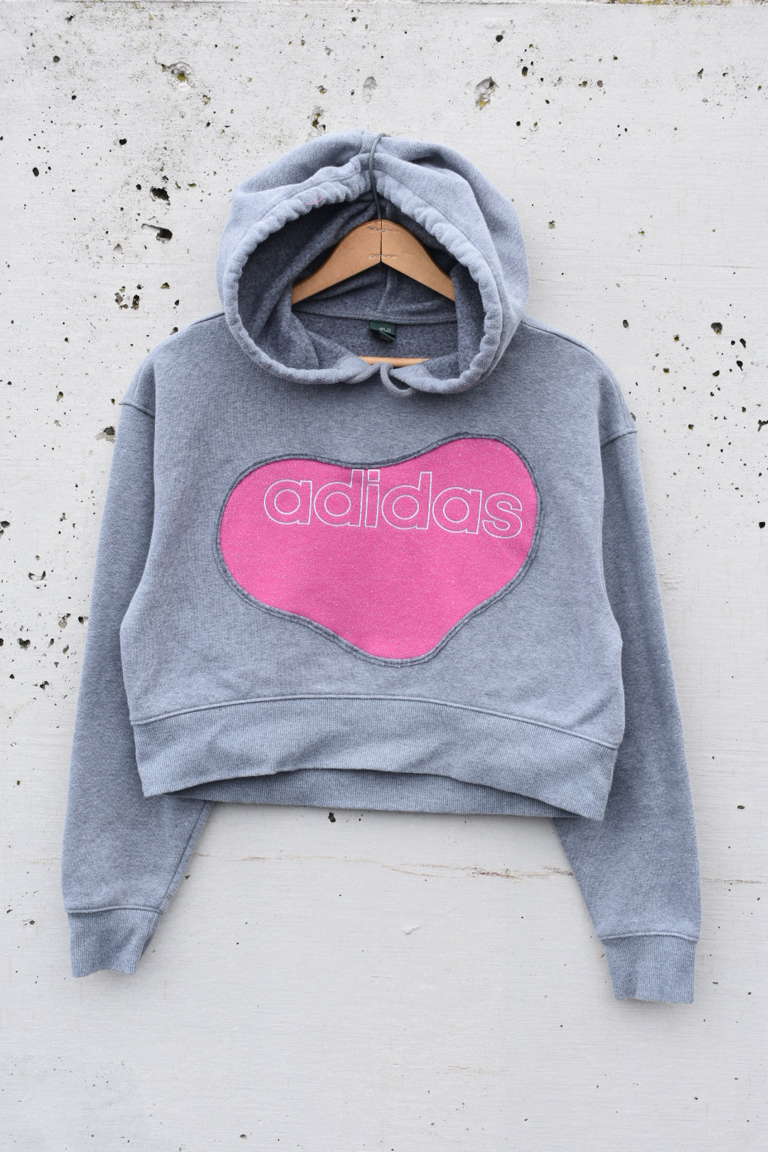 Grey and Pink Reworked Cropped Hoodie