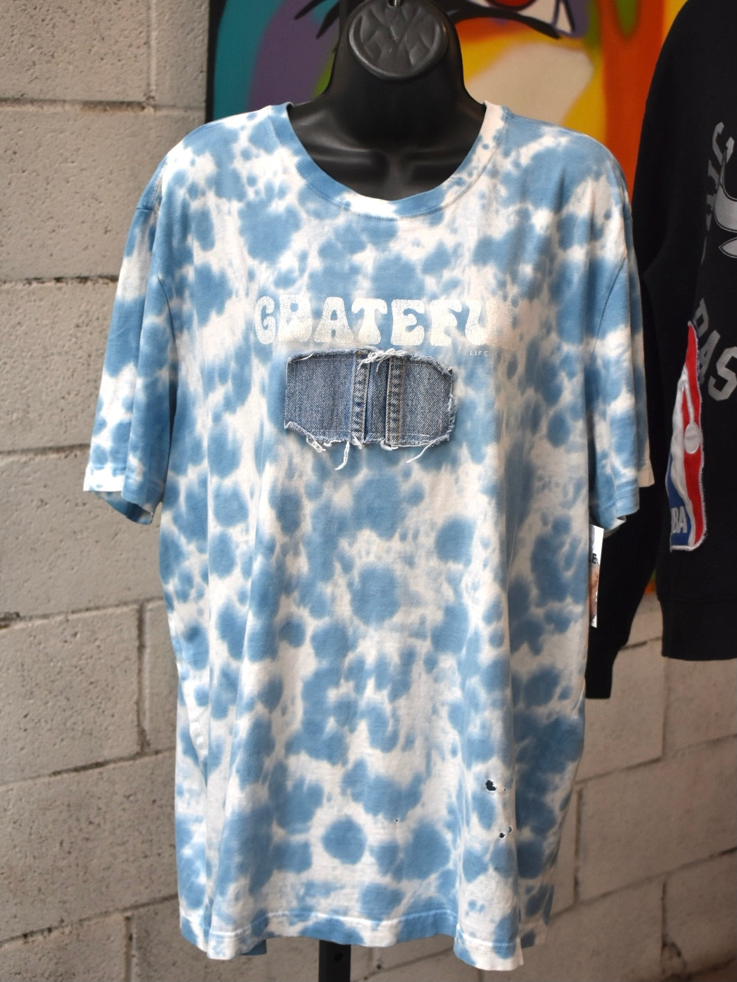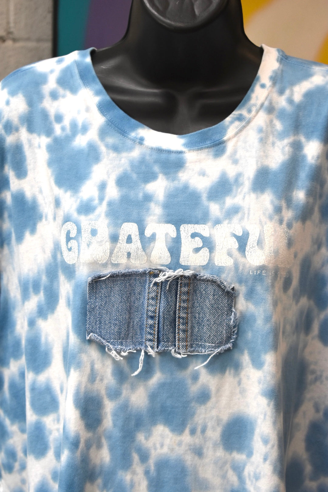 Blue Dyed Tee with Denim Patch