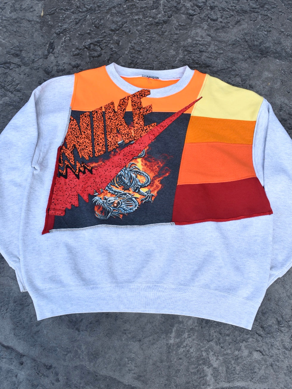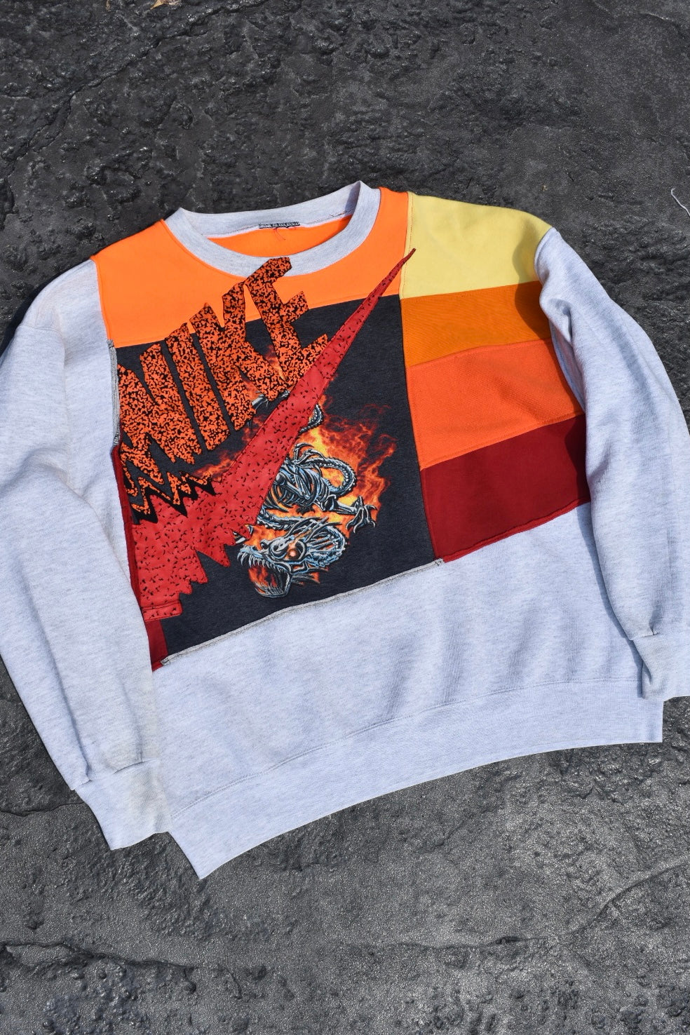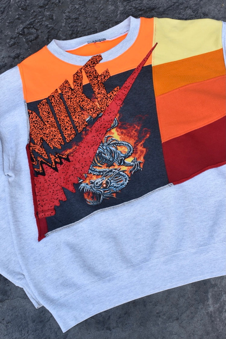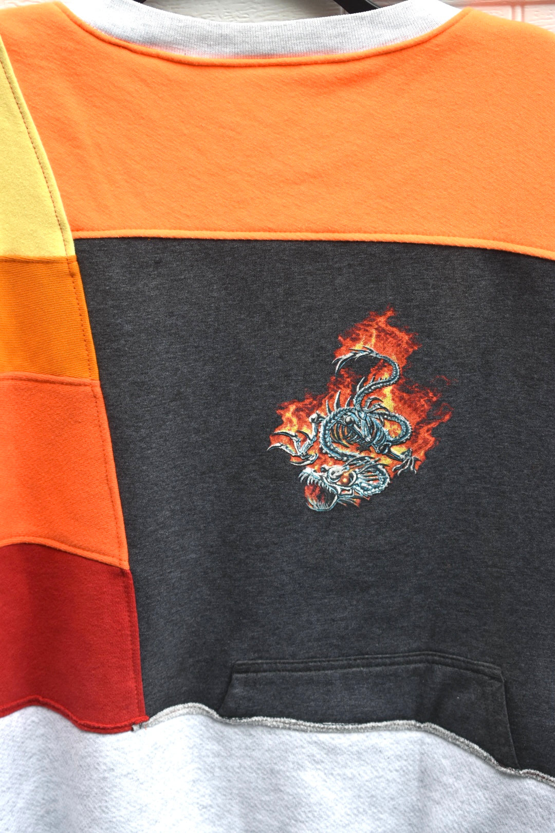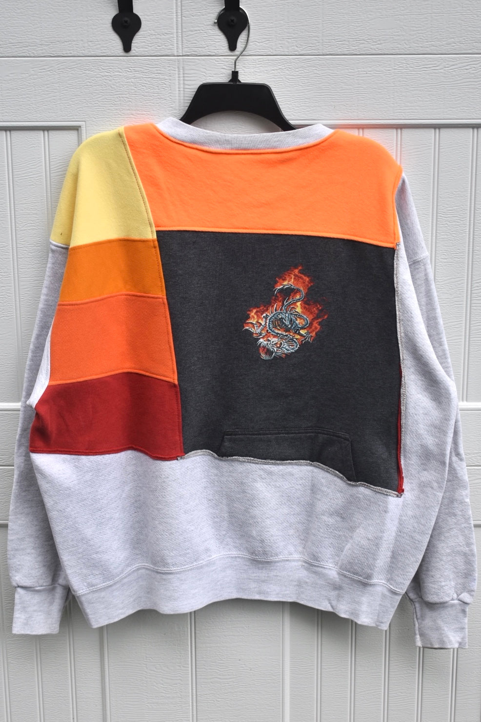 Light Grey, Orange, Red and Yellow Reworked Pullover