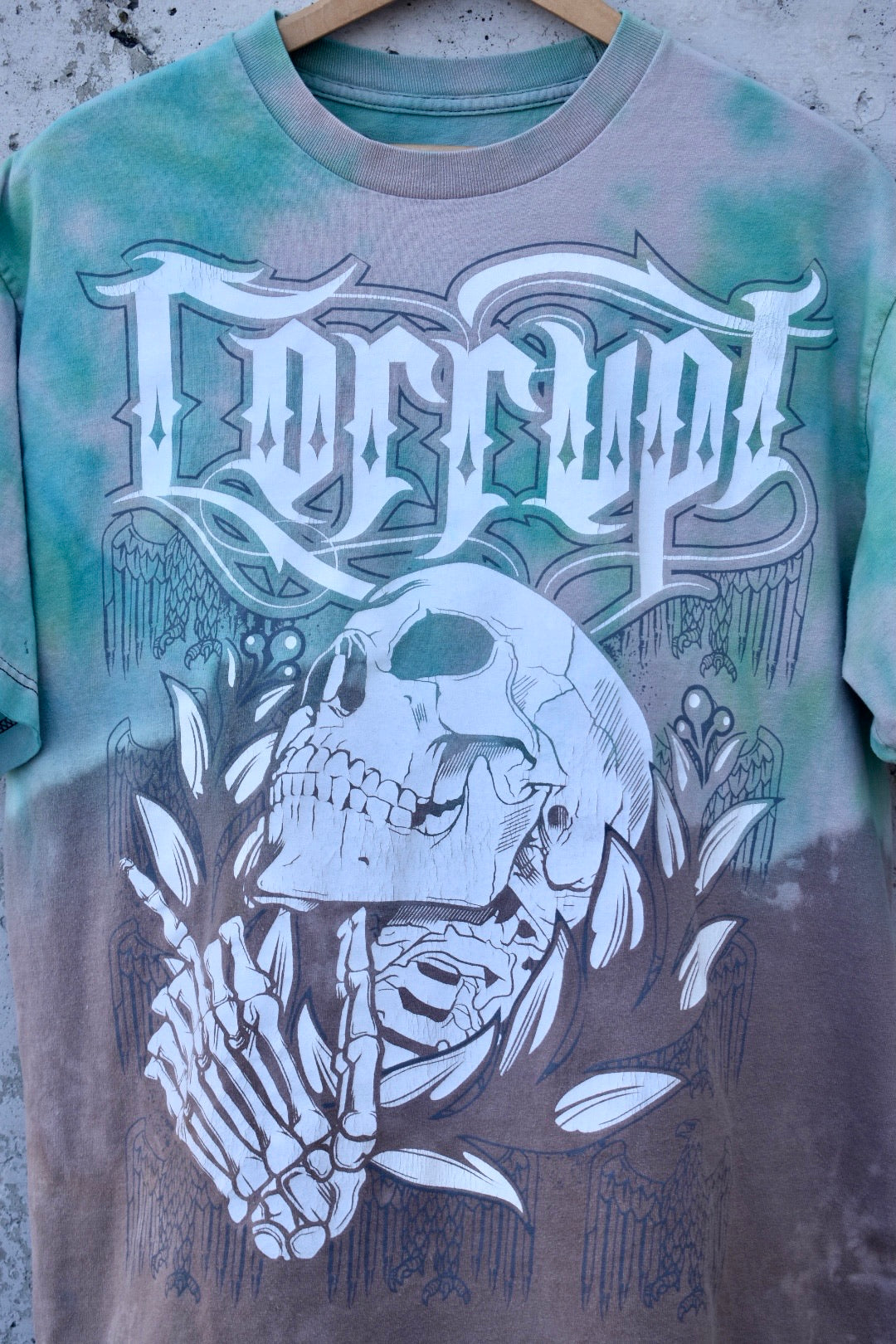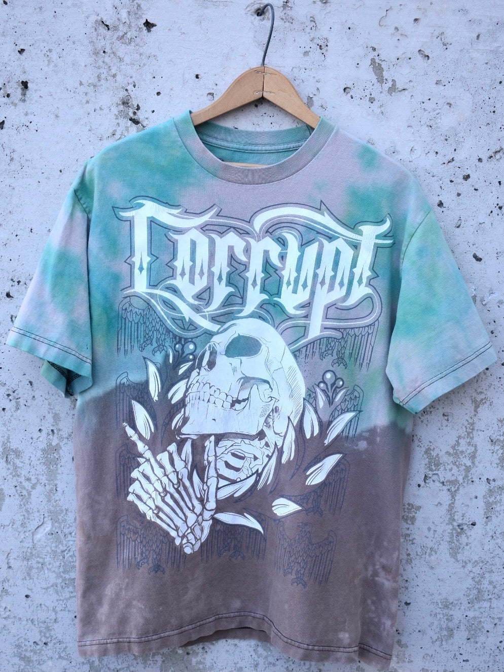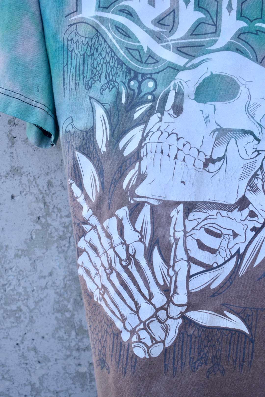 Unisex large Bleached and Dyed Skull & Middle Finger Tee