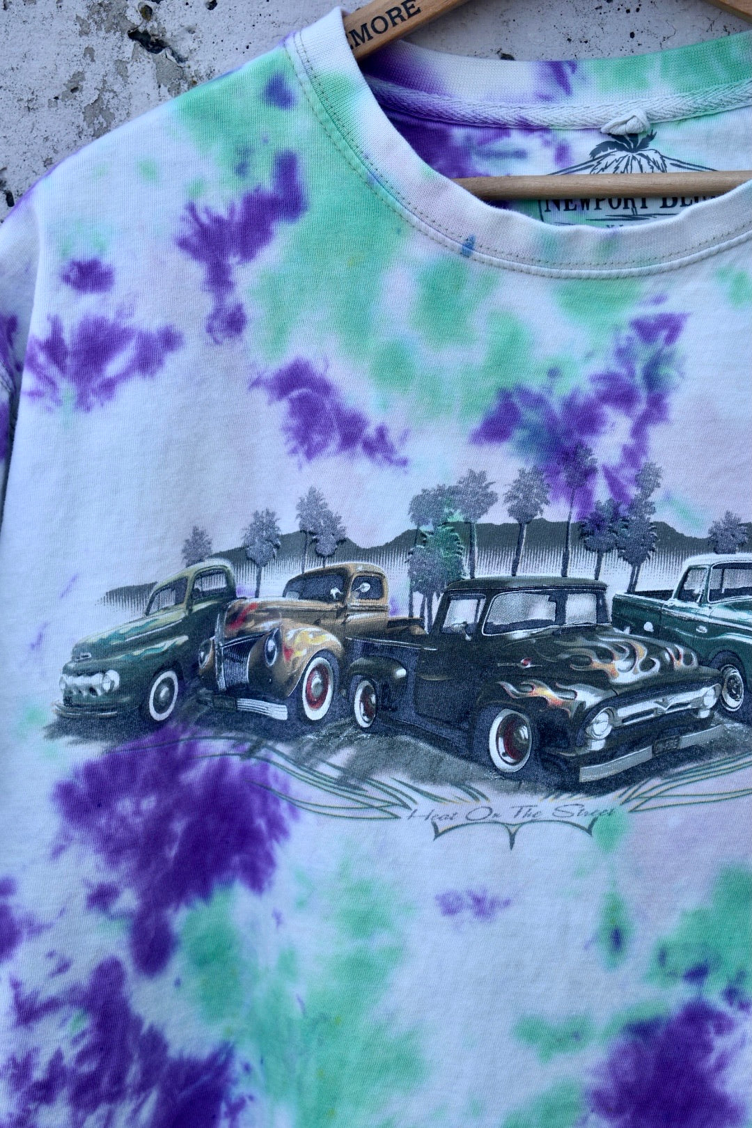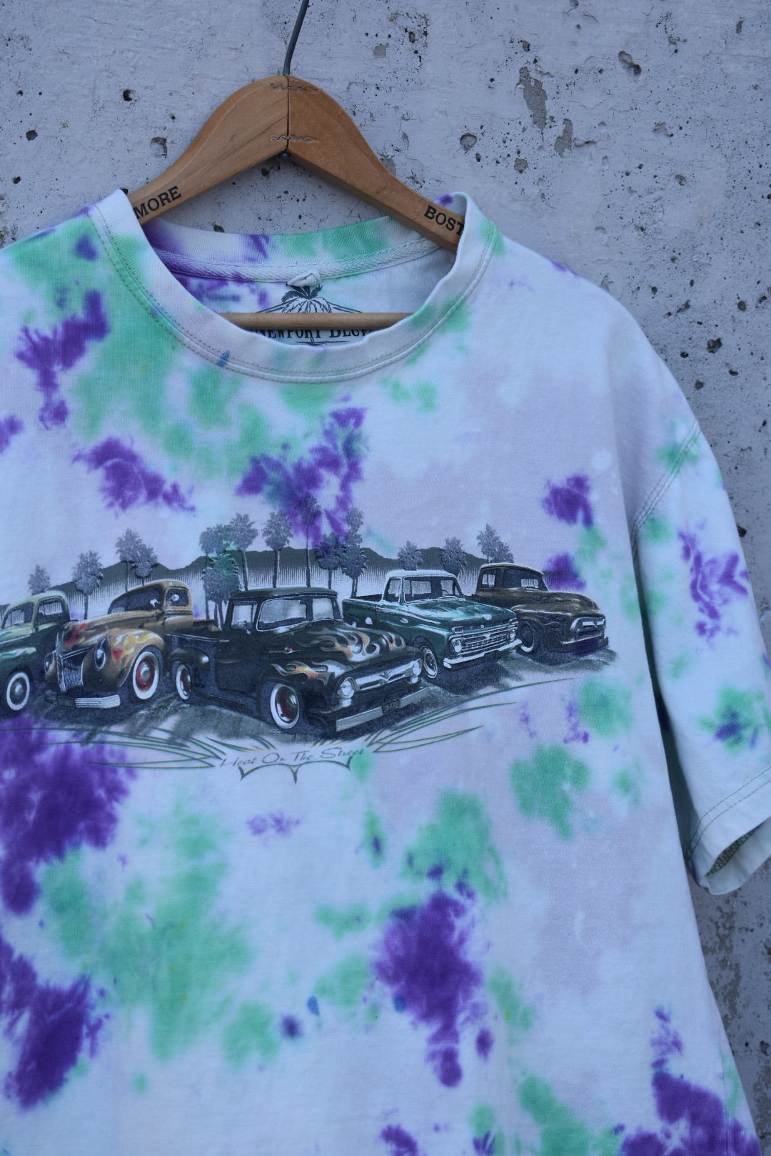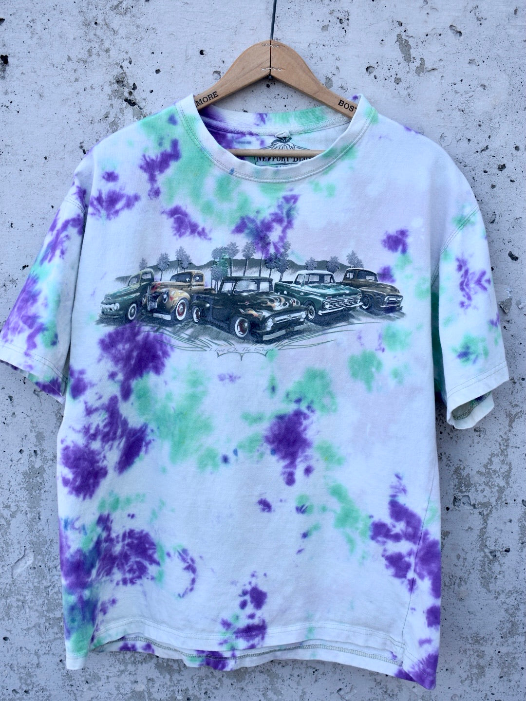 Unisex xlarge Bleached and Purple & Green Dyed Vintage Car Tee