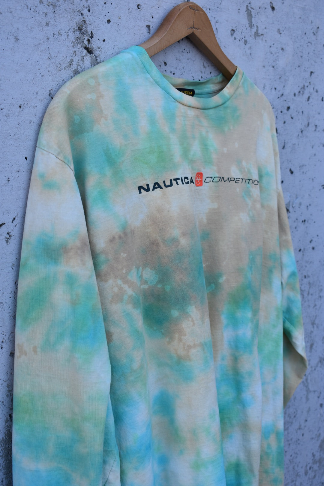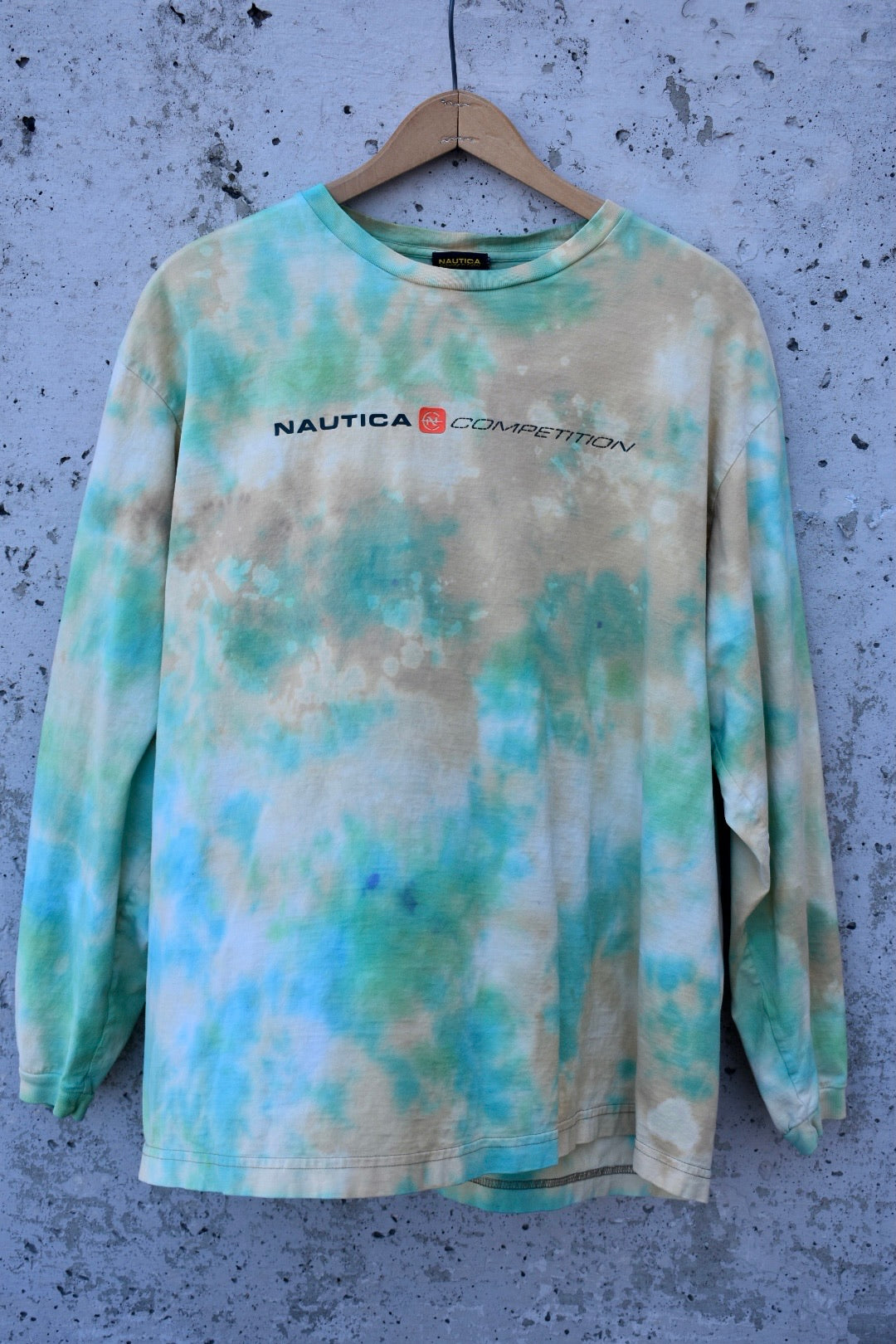 Unisex xlarge Bleached and Blue & Green Dyed Branded Long Sleeve Top