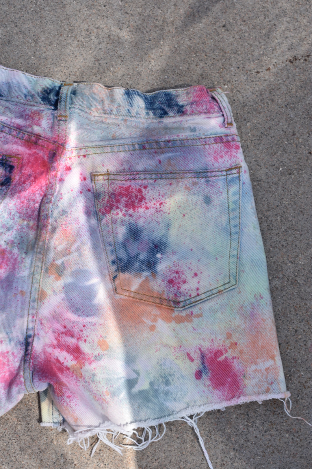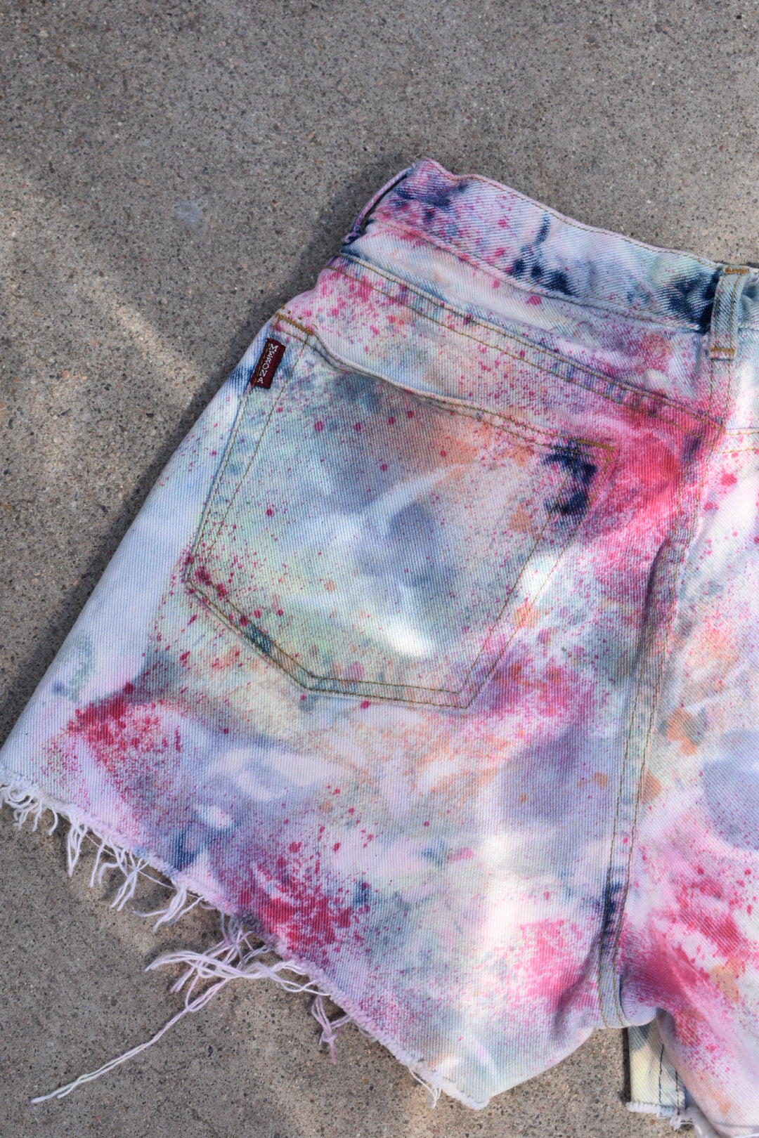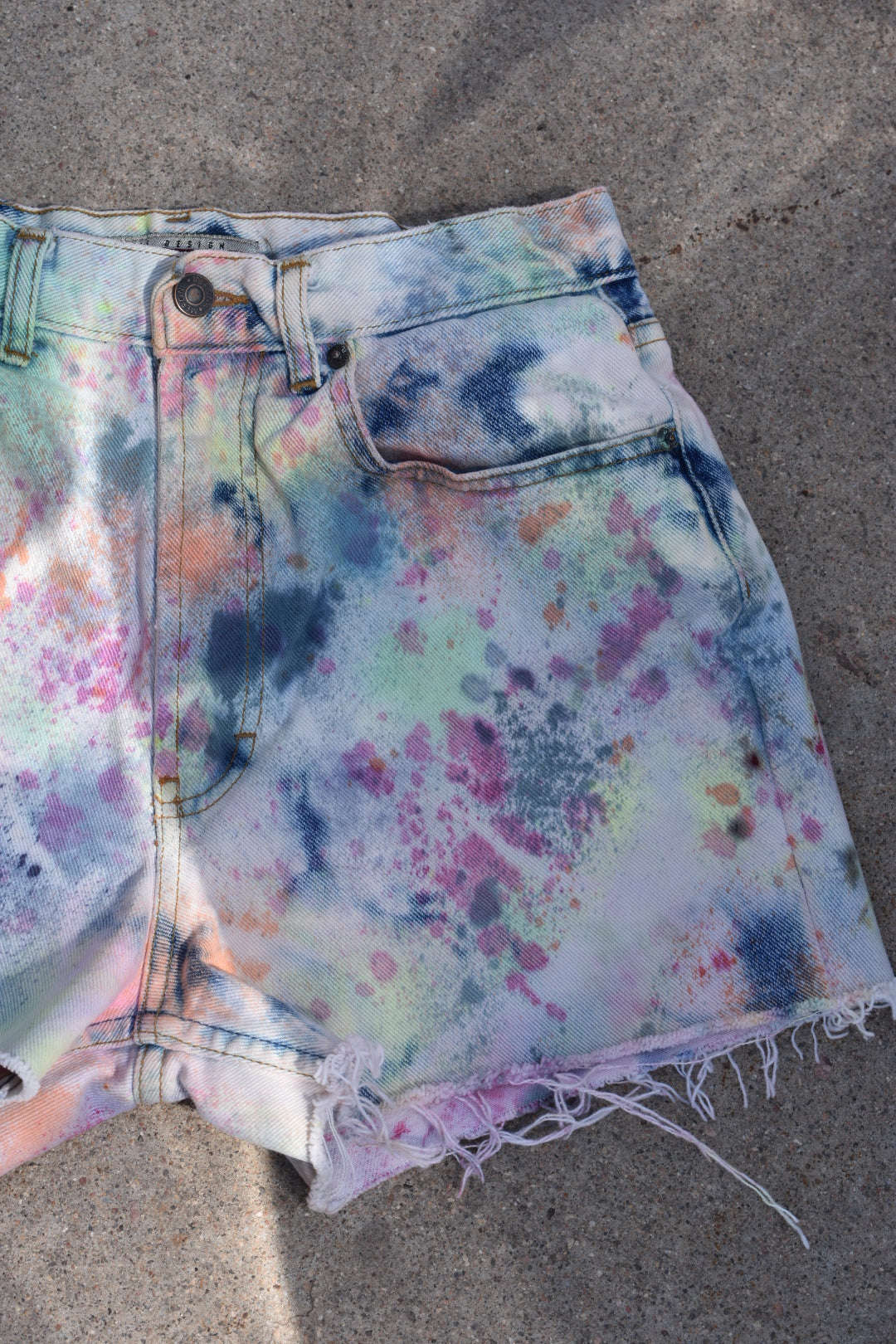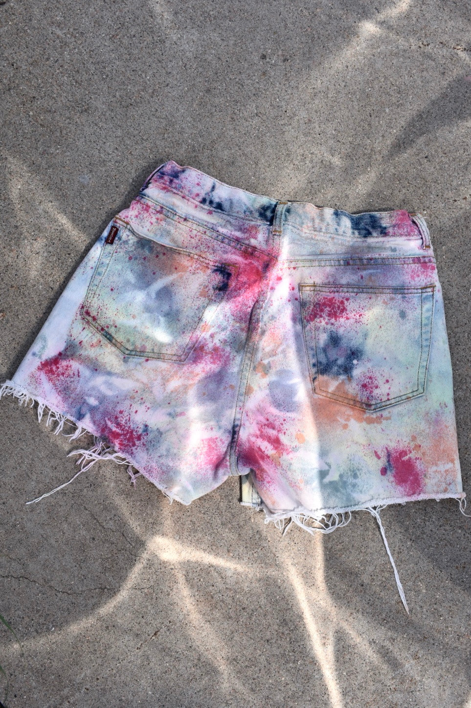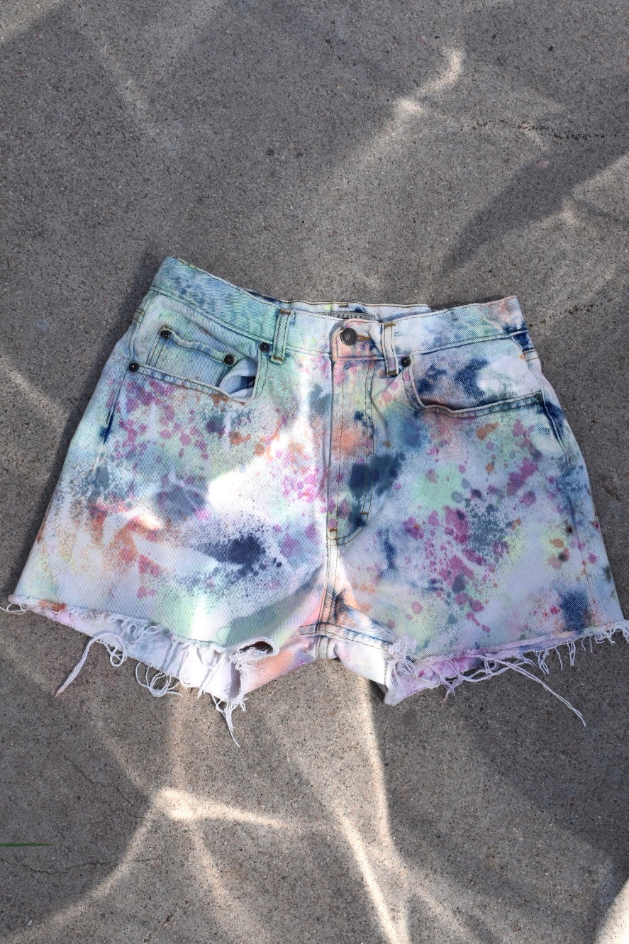 Reverse Dyed and Tie Dyed Reworked High Waisted Jean Shorts