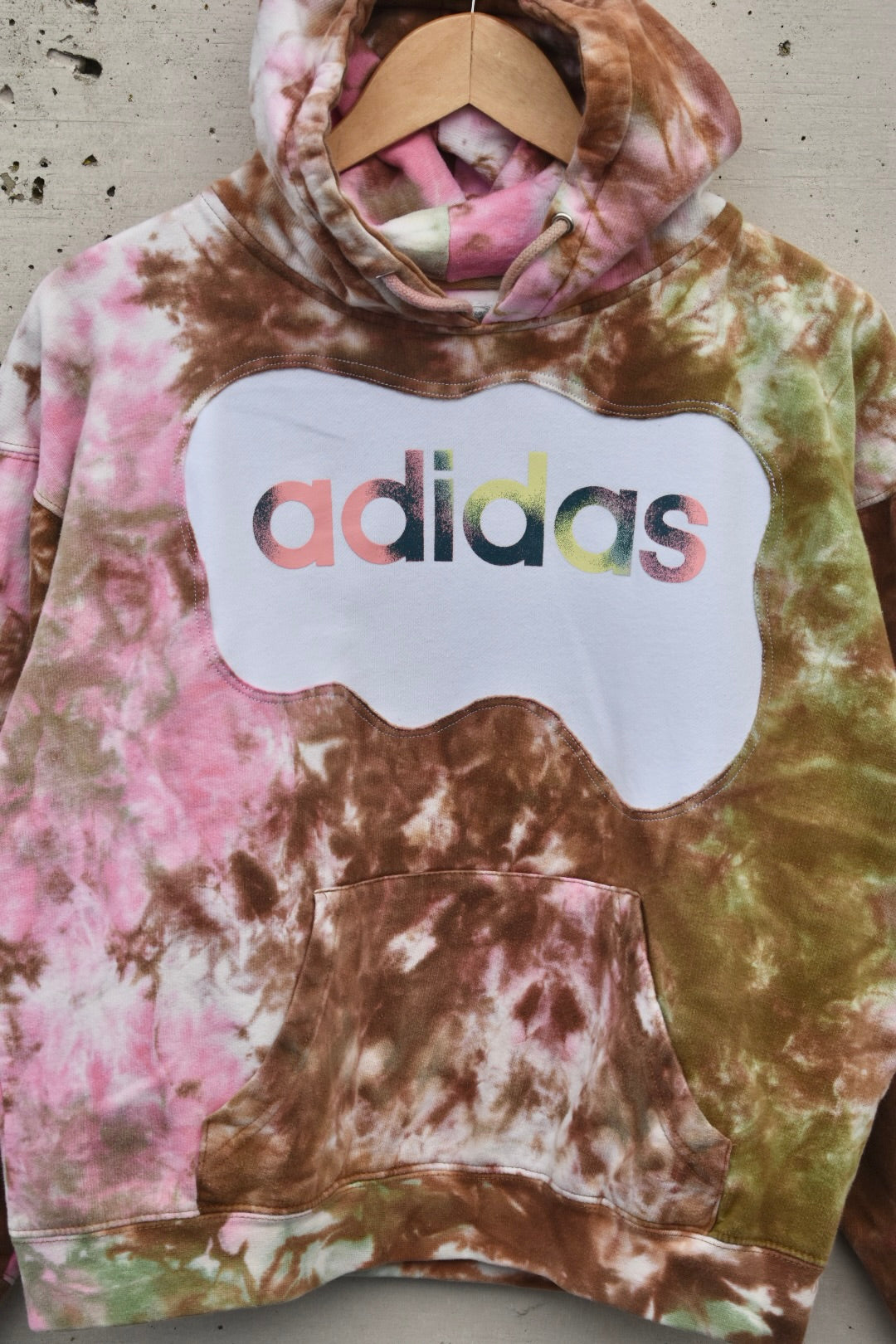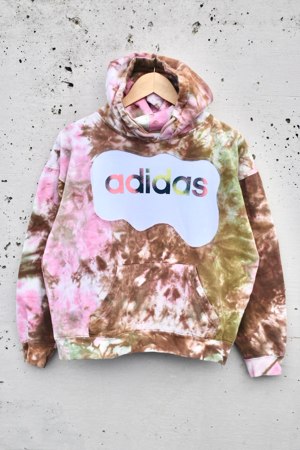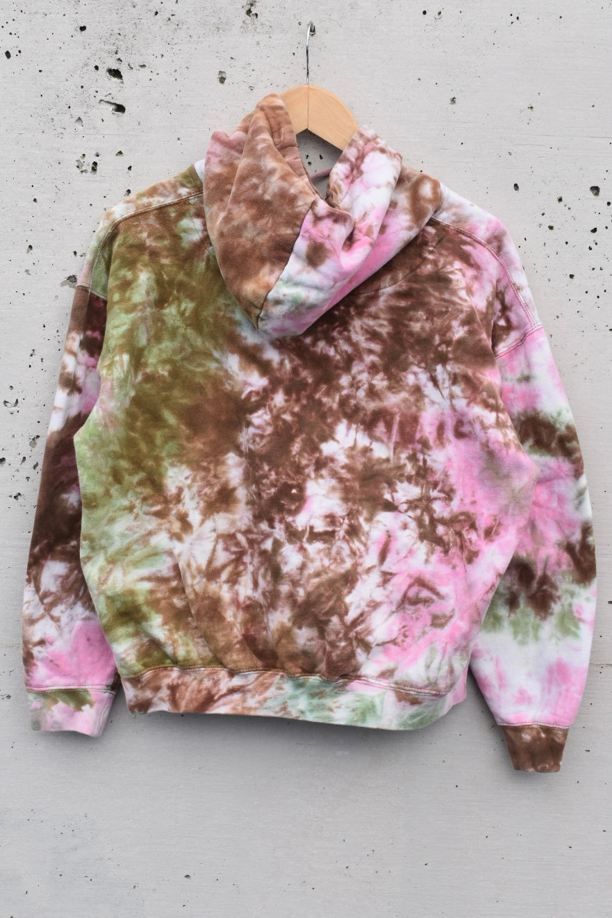 Brown Pink and Green Tie Dye and White Reworked Hoodie