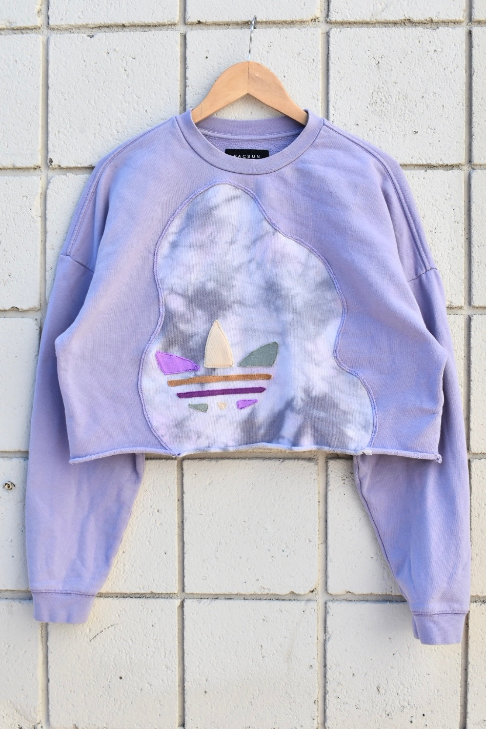 Light Purple and Tie Dye Reworked Cropped Pullover