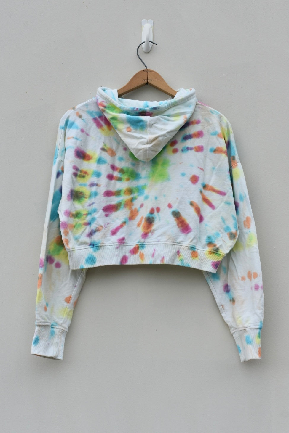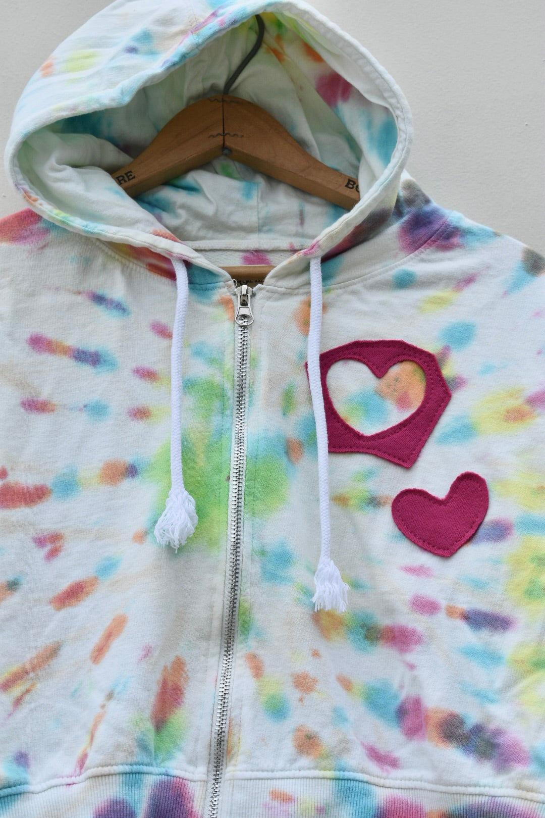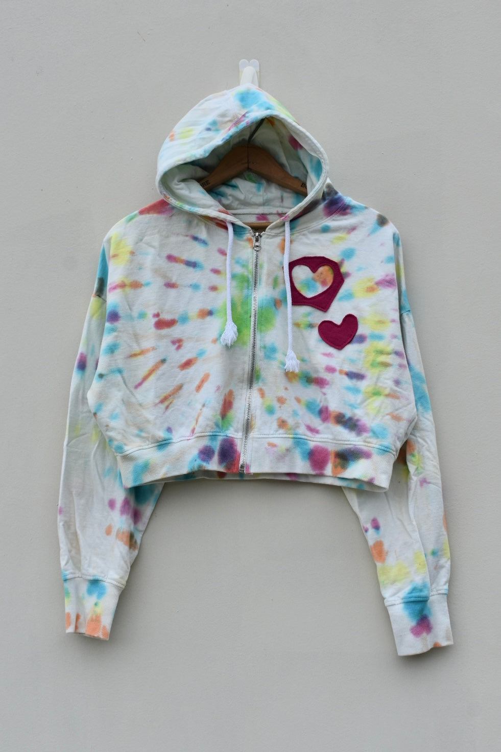 Pink and tie dye reworked cropped zip up hoodie