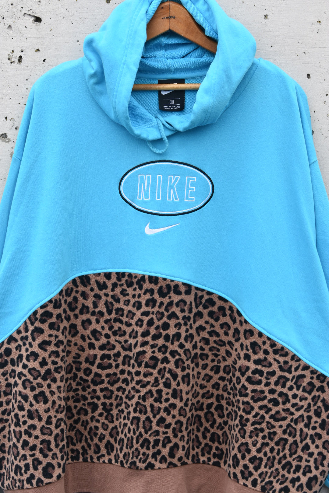 Blue and Cheetah Print Reworked Fleece Hoodie