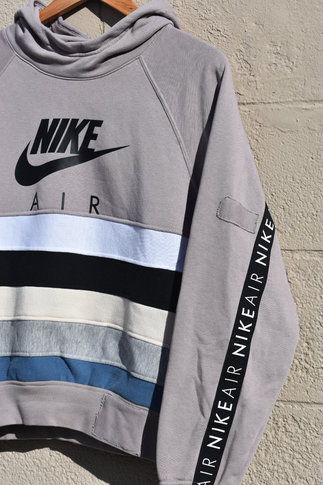 Grey, White, Black, Cream and Blue Reworked Hoodie