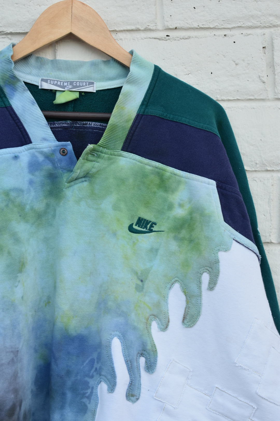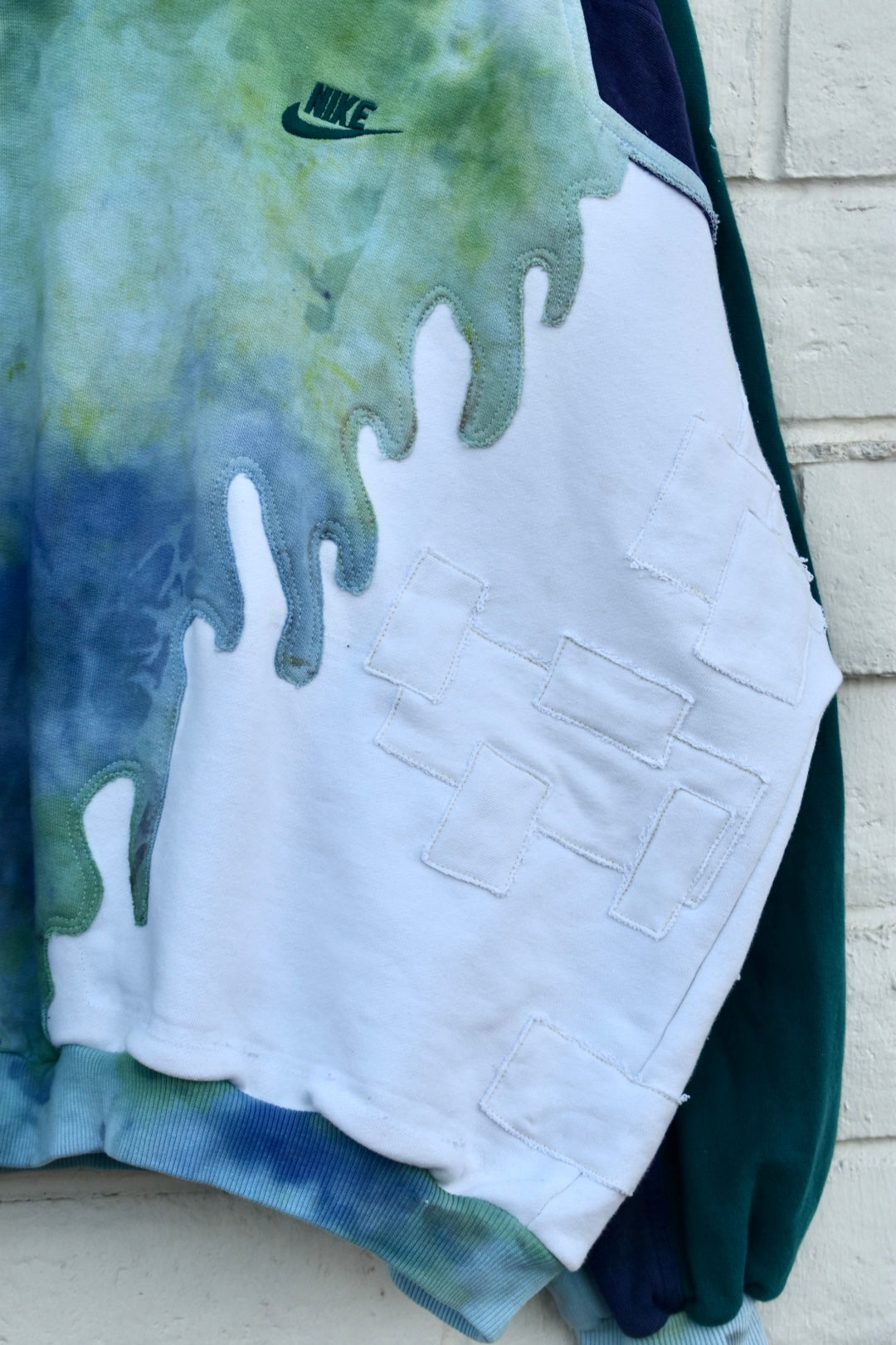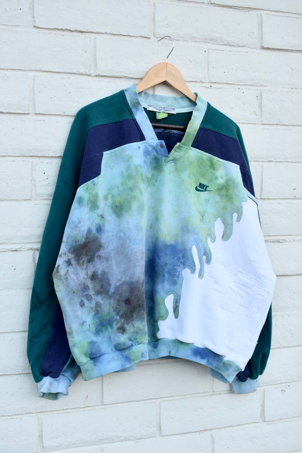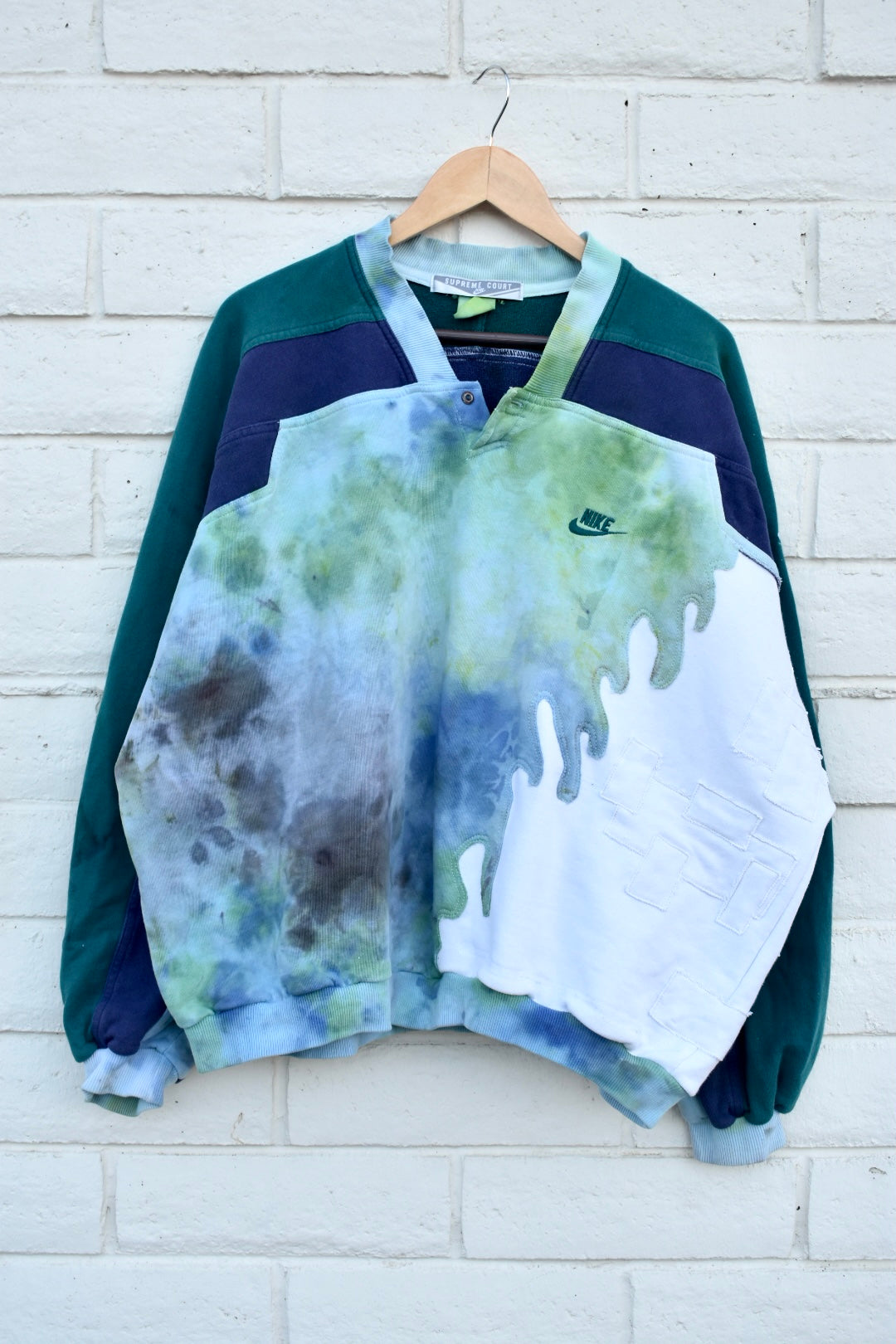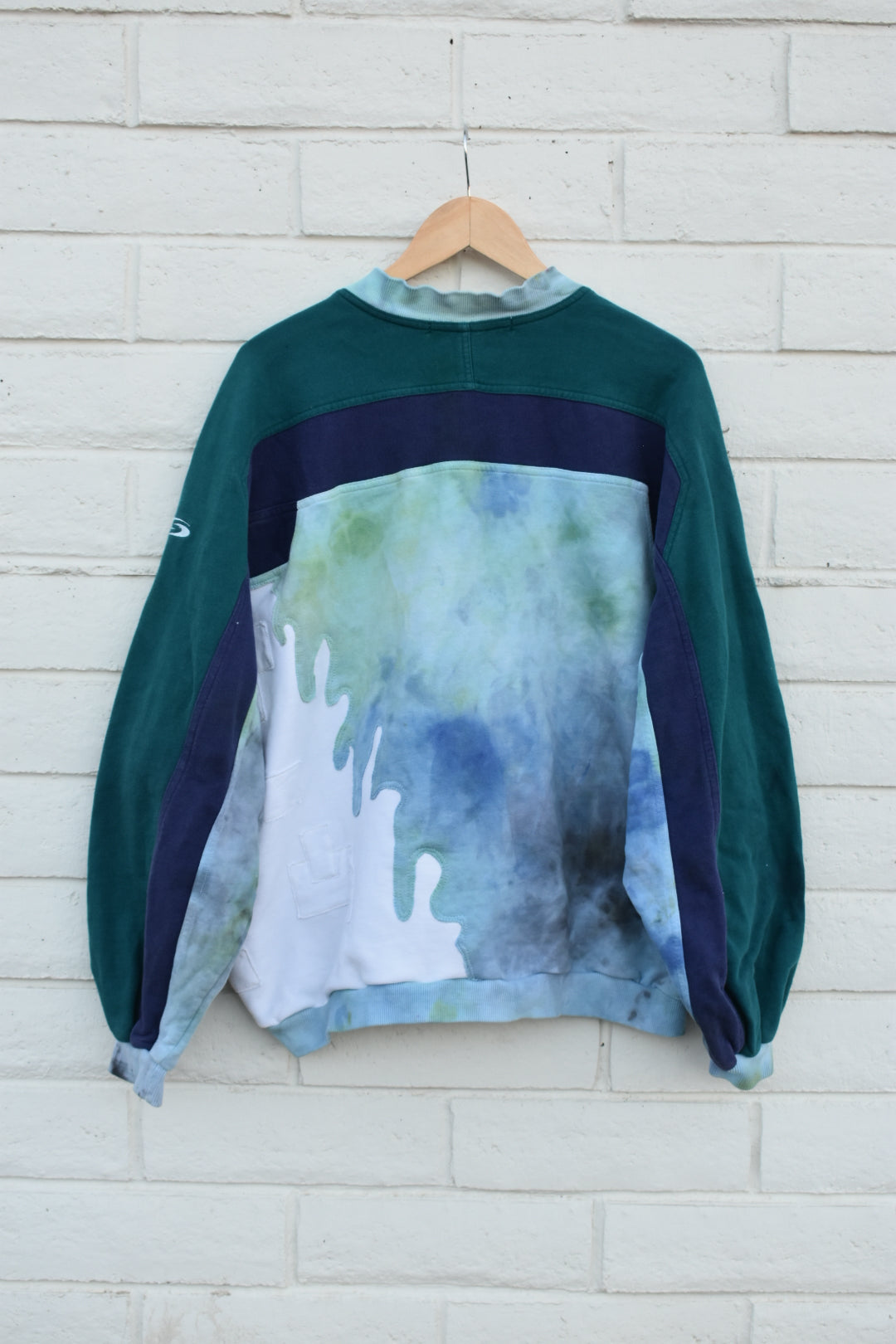 Blue, Black and Green Tie Dye and White Reworked Pullover