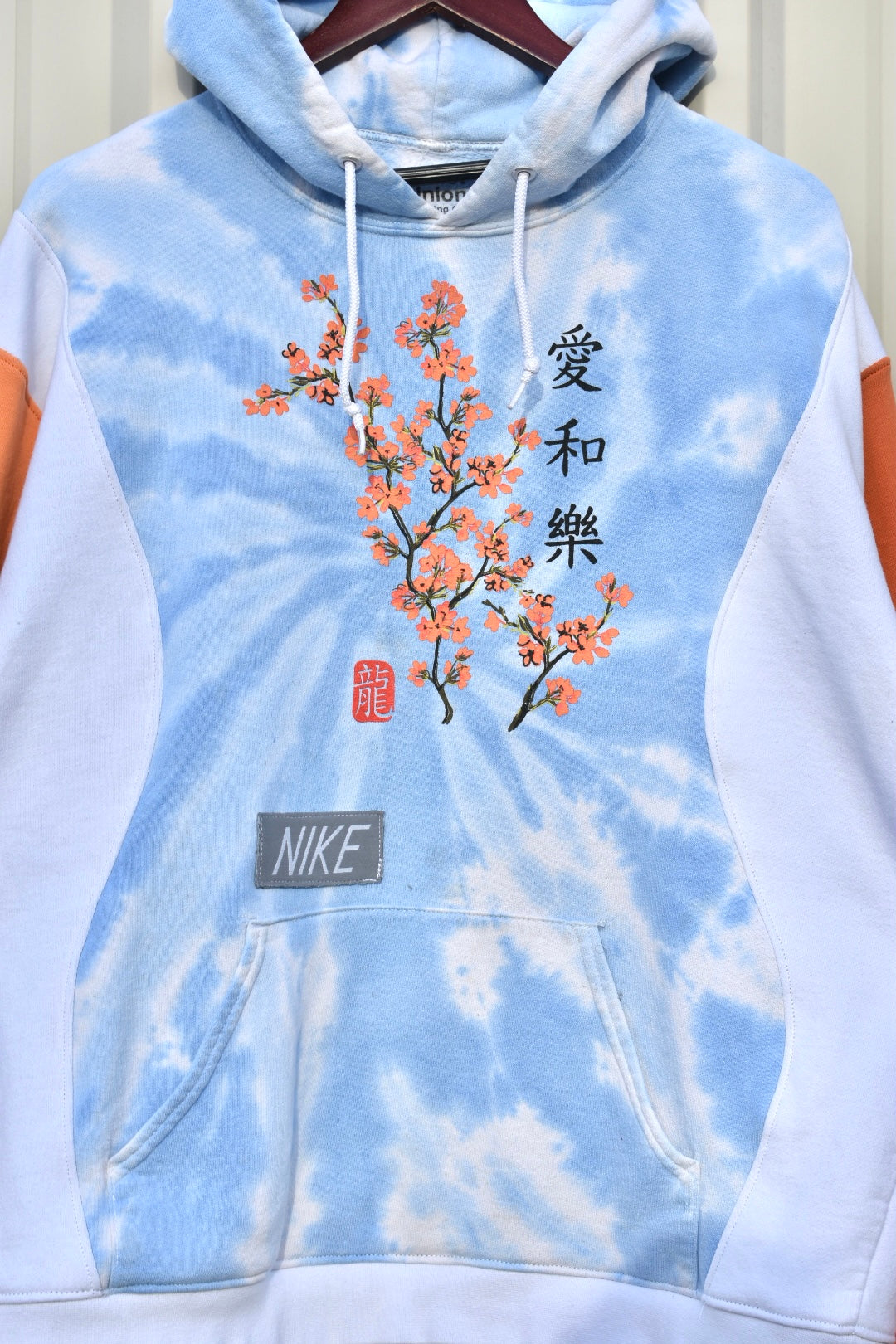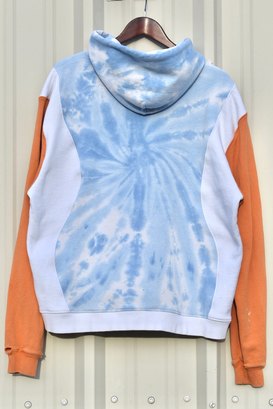 Blue Tie Dye, White and Orange Reworked Hoodie