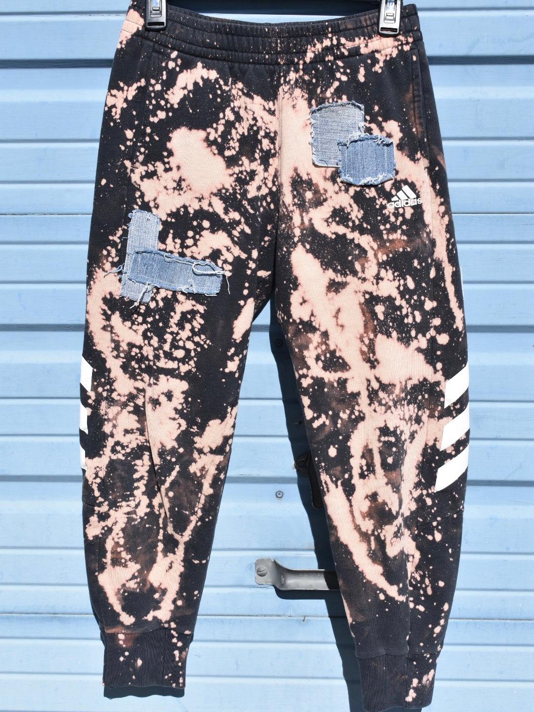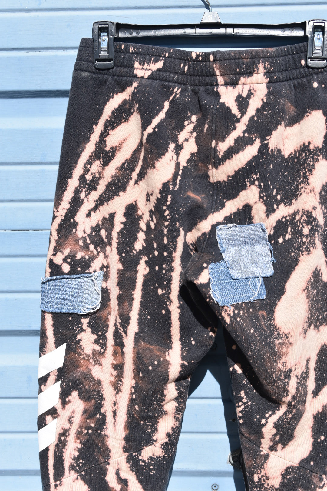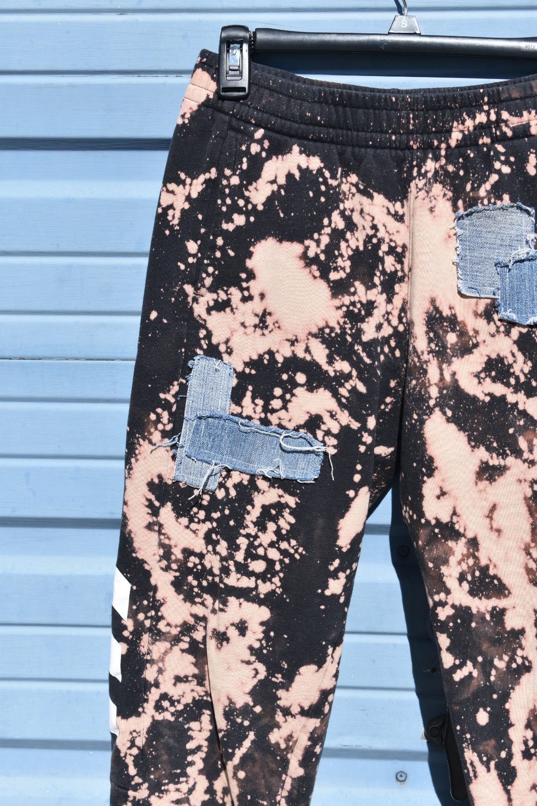 Black Reverse Dyed Sweatpants Jogger with Denim Patches